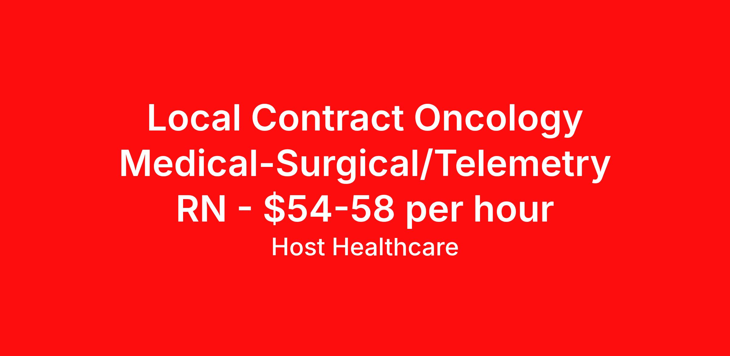Local Contract Oncology Medical-Surgical/Telemetry RN - $54-58 per hour