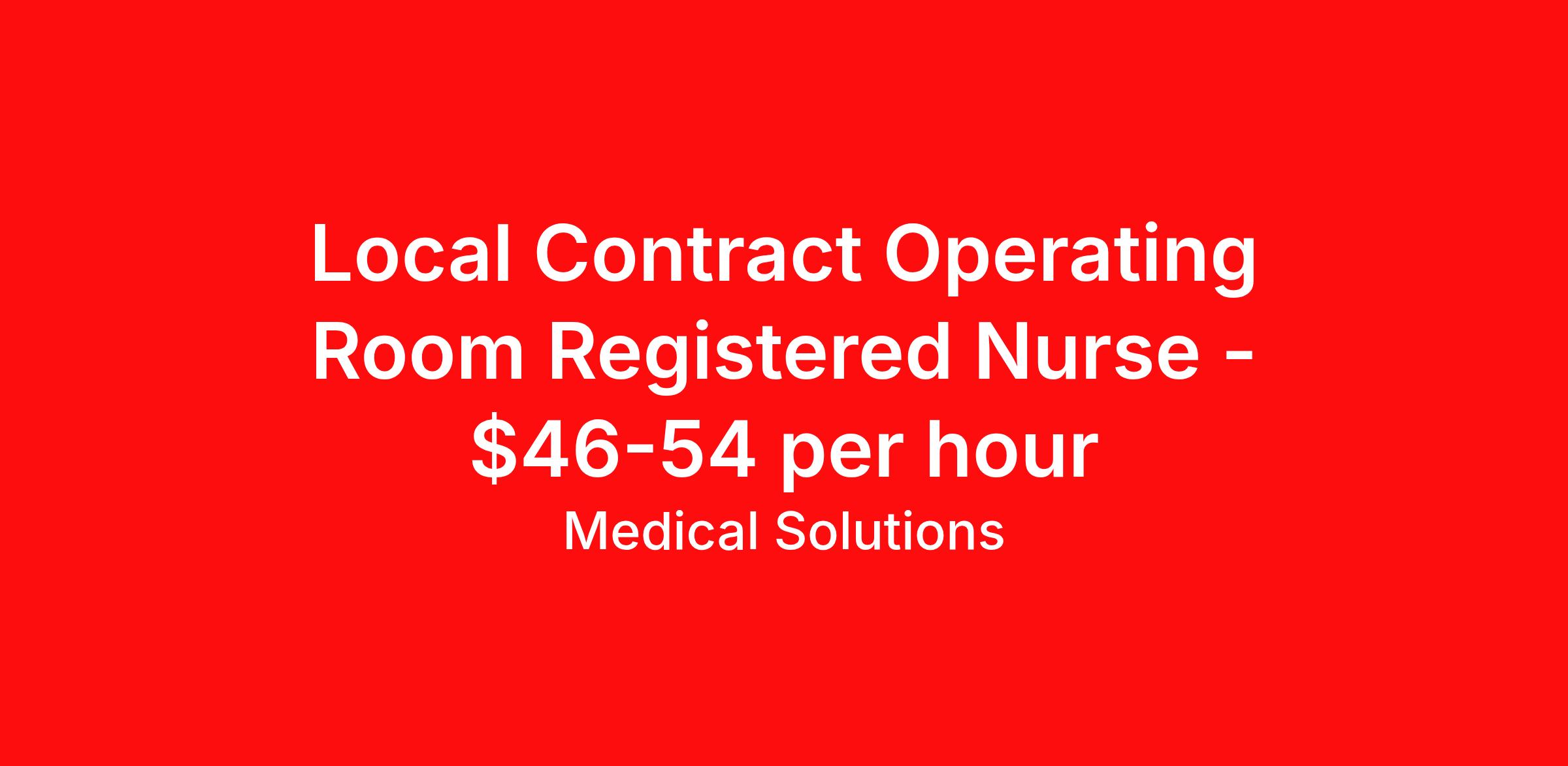Medical Solutions is seeking a local contract nurse RN OR - Operating Room for a local contract nursing job in Hardeeville, South Carolina. Job Description & Requirements Specialty: OR - Operating Room Discipline: RN Duration: 13 weeks 36 hours per week Shift: 12 hours, days Employment Type: Local Contract We’re seeking talented healthcare professionals whose adventure game is as strong as their clinical game. Those that want flexibility and high pay, we have the positions for you! Some of the industry-leading benefits enjoyed by Medical Solutions travel nurses and travel allied healthcare professionals include: Day One Medical, Dental, and Vision with low premiums Day One 401(k) with Company Contribution Personalized Compensation Packages Paid, Private, Fully Furnished, Pet-Friendly Housing Dedicated Recruiter and 24/7 Customer Care Line Per Diem Allowance and Paid Travel Licensure and Certification Reimbursement Free Liability Coverage Voluntary Benefits: Critical Illness, Hospital Indemnity, Accident, and Pet Insurance Equal Employment Opportunity And More! Estimated pay package based on bill rate at time job was posted. Bill rates can change frequently and without notice. Exact pay package may vary based on guaranteed hours, distance being traveled, and customizations available for travelers. Medical Solutions Job ID 1076508L. Posted job title: OR (Operating Room) About Medical Solutions At Medical Solutions, we’re people who care, helping people who care. No matter how you look at it, there’s a whole lot of care going on in our world and that’s just the way we like it. What do we do? Medical Solutions is one of the nation’s largest providers of total workforce solutions in the healthcare industry, connecting nurses and allied health clinicians with hospitals and healthcare systems across the country and around the corner. Through our family of brands, we also serve a segment of clients outside of the healthcare space. And we’re the very best at what we do. You’ll love our culture that’s filled with heart and soul. As a company and employer, we’re sincerely and unabashedly us. We lead as humans first and believe the unique qualities of each team member make us better together. We share a purpose for helping others and the drive to make a difference. And we offer endless opportunities for personal and professional growth, throughout your career. At Medical Solutions, you’ll find a great place to work and a career home. We’ve received Best Places to Work awards, landed top industry awards, and received accolades for the impact we’ve made in business and within our community. But the only way to really get to know us, is to join us. We think you’ll fit right in. Benefits Weekly pay Holiday Pay Guaranteed Hours Continuing Education 401k retirement plan Pet insurance Company provided housing options Cancelation protection Wellness and fitness programs Mileage reimbursement Referral bonus Employee assistance programs Medical benefits Dental benefits Vision benefits Benefits start day 1 License and certification reimbursement Life insurance Discount program
