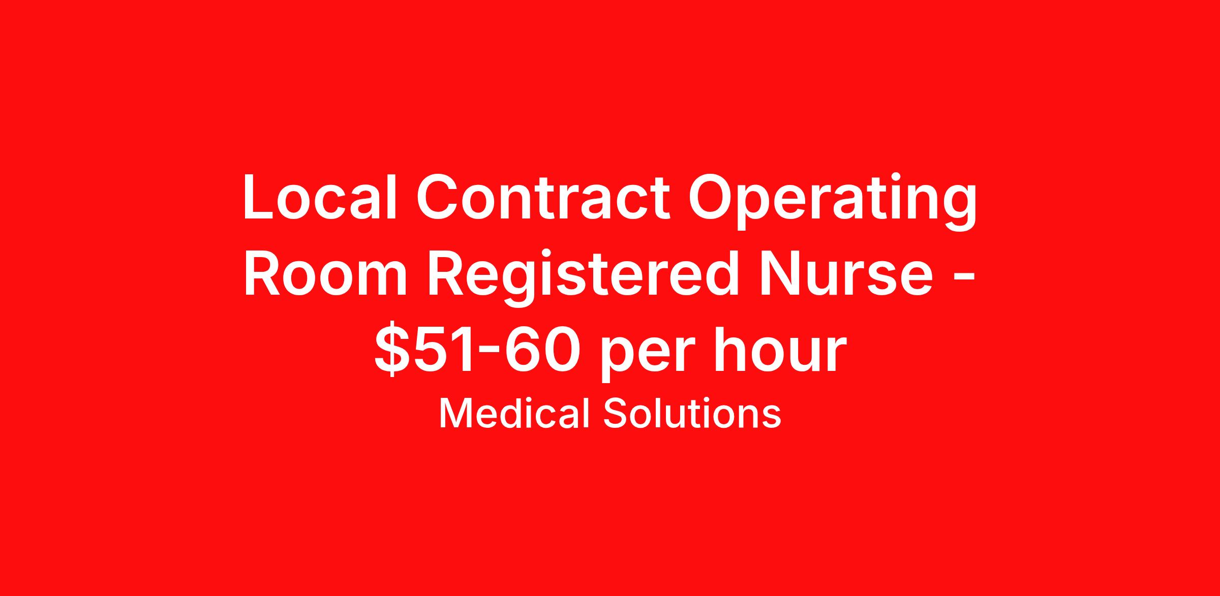 Medical Solutions is seeking a local contract nurse RN OR - Operating Room for a local contract nursing job in West Nyack, New York. Job Description & Requirements Specialty: OR - Operating Room Discipline: RN Duration: 13 weeks 40 hours per week Shift: 8 hours, days Employment Type: Local Contract We’re seeking talented healthcare professionals whose adventure game is as strong as their clinical game. Those that want flexibility and high pay, we have the positions for you! Some of the industry-leading benefits enjoyed by Medical Solutions travel nurses and travel allied healthcare professionals include: Day One Medical, Dental, and Vision with low premiums Day One 401(k) with Company Contribution Personalized Compensation Packages Paid, Private, Fully Furnished, Pet-Friendly Housing Dedicated Recruiter and 24/7 Customer Care Line Per Diem Allowance and Paid Travel Licensure and Certification Reimbursement Free Liability Coverage Voluntary Benefits: Critical Illness, Hospital Indemnity, Accident, and Pet Insurance Equal Employment Opportunity And More! Estimated pay package based on bill rate at time job was posted. Bill rates can change frequently and without notice. Exact pay package may vary based on guaranteed hours, distance being traveled, and customizations available for travelers. Medical Solutions Job ID 1068078L. Posted job title: OR (Operating Room) About Medical Solutions At Medical Solutions, we’re people who care, helping people who care. No matter how you look at it, there’s a whole lot of care going on in our world and that’s just the way we like it. What do we do? Medical Solutions is one of the nation’s largest providers of total workforce solutions in the healthcare industry, connecting nurses and allied health clinicians with hospitals and healthcare systems across the country and around the corner. Through our family of brands, we also serve a segment of clients outside of the healthcare space. And we’re the very best at what we do. You’ll love our culture that’s filled with heart and soul. As a company and employer, we’re sincerely and unabashedly us. We lead as humans first and believe the unique qualities of each team member make us better together. We share a purpose for helping others and the drive to make a difference. And we offer endless opportunities for personal and professional growth, throughout your career. At Medical Solutions, you’ll find a great place to work and a career home. We’ve received Best Places to Work awards, landed top industry awards, and received accolades for the impact we’ve made in business and within our community. But the only way to really get to know us, is to join us. We think you’ll fit right in. Benefits Weekly pay Holiday Pay Guaranteed Hours Continuing Education 401k retirement plan Pet insurance Company provided housing options Cancelation protection Wellness and fitness programs Mileage reimbursement Referral bonus Employee assistance programs Medical benefits Dental benefits Vision benefits Benefits start day 1 License and certification reimbursement Life insurance Discount program