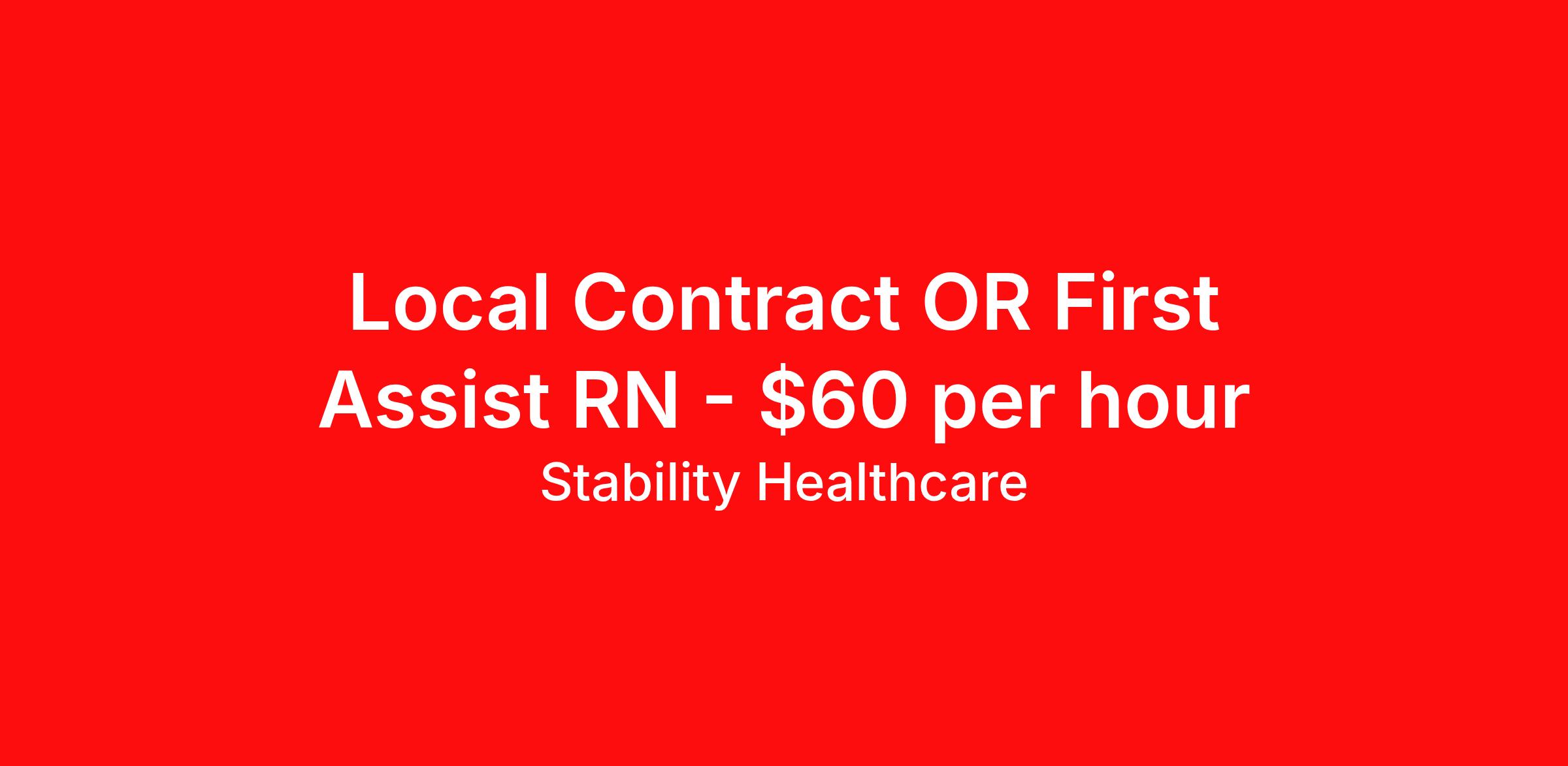 Stability Healthcare is seeking a local contract nurse RN First Assist for a local contract nursing job in St. Louis, Missouri. Job Description & Requirements Specialty: First Assist Discipline: RN Duration: 13 weeks 36 hours per week Shift: 12 hours, days Employment Type: Local Contract Stability Healthcare is looking for a RNFA RN contract position in St. Louis, MO. RNFA's are highly trained and skilled in surgical procedures, and they have completed additional education and certification to qualify for this role. They work under the supervision of a surgeon, and their responsibilities can include positioning the patient, preparing the surgical site, handling instruments, providing tissue retraction, and suturing incisions. RNFA's play a critical role in ensuring patient safety during surgical procedures, and their expertise helps to improve surgical outcomes. *$600 travel bonus *Day 1 health insurance with United Healthcare *PTO plan start accruing on day 1, use during contract or cash out at the end! *Guaranteed stipend if facility calls you off *Extra hour bonus earn an additional hourly bonus for working over your weekly contracted hours Stability Job ID L-788840. Pay package is based on 12 hour shifts and 36 hours per week (subject to confirmation) with tax-free stipend amount to be determined. Posted job title: RNFA About Stability Healthcare Stability Healthcare was founded in 2009, with the mission of becoming the best Travel Nursing Agency in California. We have been rated one of the top travel nursing agencies and offer our nurses the highest paying travel nursing jobs available. We have access to the best travel assignments from 1000’s of facilities. You can start the year off in sunny California, spend the Spring in the Colorado Rockies, enjoy the Summer in the Mid-West, experience the change of seasons in Boston and New York, and hit the beaches of Florida in the winter. Our Nurses work in the best hospitals and health systems in the country. Benefits Guaranteed Hours Benefits start day 1