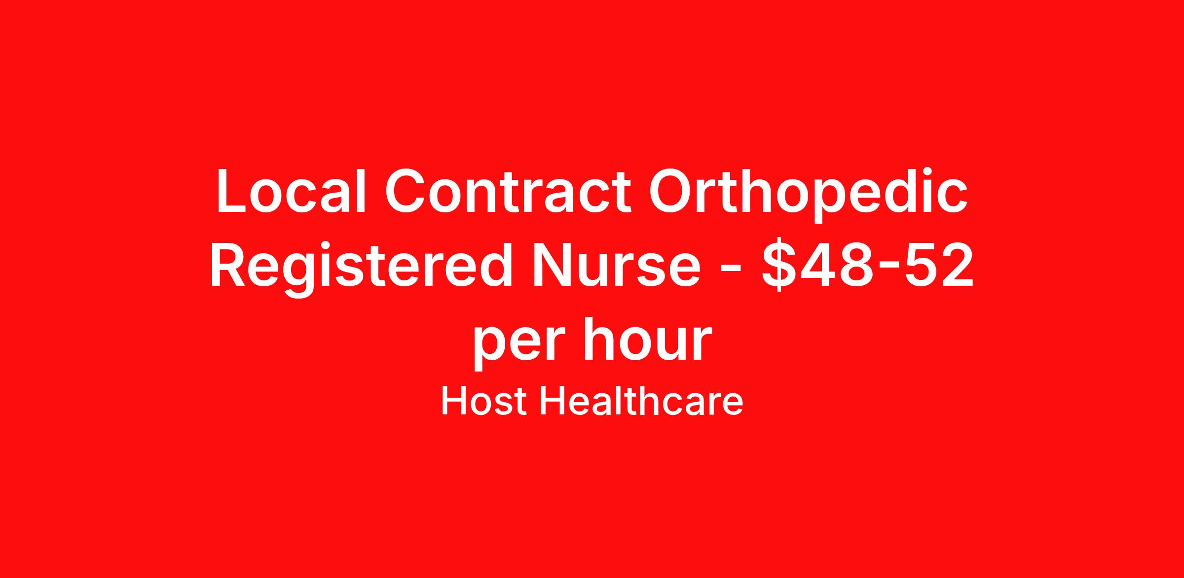 Local Contract Orthopedic Registered Nurse - $48-52 per hour