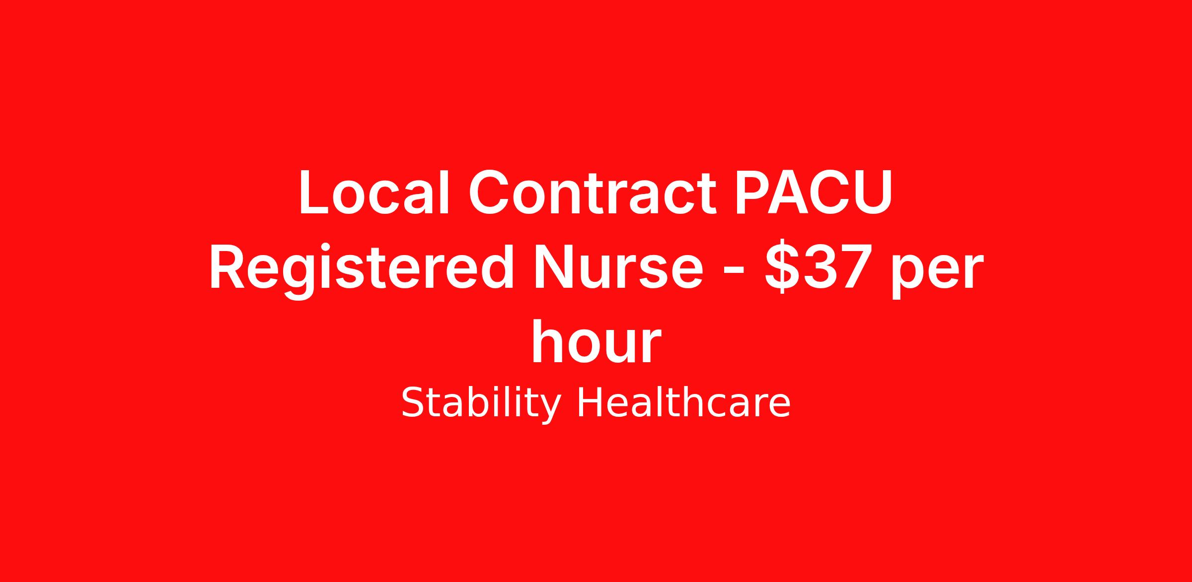Stability Healthcare is seeking a local contract nurse RN PACU - Post Anesthesia Care for a local contract nursing job in Oro Valley, Arizona. Job Description & Requirements Specialty: PACU - Post Anesthesia Care Discipline: RN Duration: 13 weeks 36 hours per week Shift: 12 hours, days Employment Type: Local Contract Stability Healthcare is looking for a PACU RN contract position in Oro Valley, AZ. PACU nurses are highly specialized RN's who care for patients who have gone under anesthesia. These nurses are responsible for observing and treating patients after surgery. They will monitor vital signs such as heart rate, blood pressure, temperature, and respiratory rate. PACU nurses are typically the first ones to greet the patient after surgery and will provide comfort and reassurances to the patient as well as family. *$600 travel bonus *Day 1 health insurance with United Healthcare *PTO plan start accruing on day 1, use during contract or cash out at the end! *Guaranteed stipend if facility calls you off *Extra hour bonus earn an additional hourly bonus for working over your weekly contracted hours Stability Job ID L-826022. Pay package is based on 12 hour shifts and 36 hours per week (subject to confirmation) with tax-free stipend amount to be determined. Posted job title: PACU About Stability Healthcare Stability Healthcare was founded in 2009, with the mission of becoming the best Travel Nursing Agency in California. We have been rated one of the top travel nursing agencies and offer our nurses the highest paying travel nursing jobs available. We have access to the best travel assignments from 1000’s of facilities. You can start the year off in sunny California, spend the Spring in the Colorado Rockies, enjoy the Summer in the Mid-West, experience the change of seasons in Boston and New York, and hit the beaches of Florida in the winter. Our Nurses work in the best hospitals and health systems in the country. Benefits Guaranteed Hours Benefits start day 1