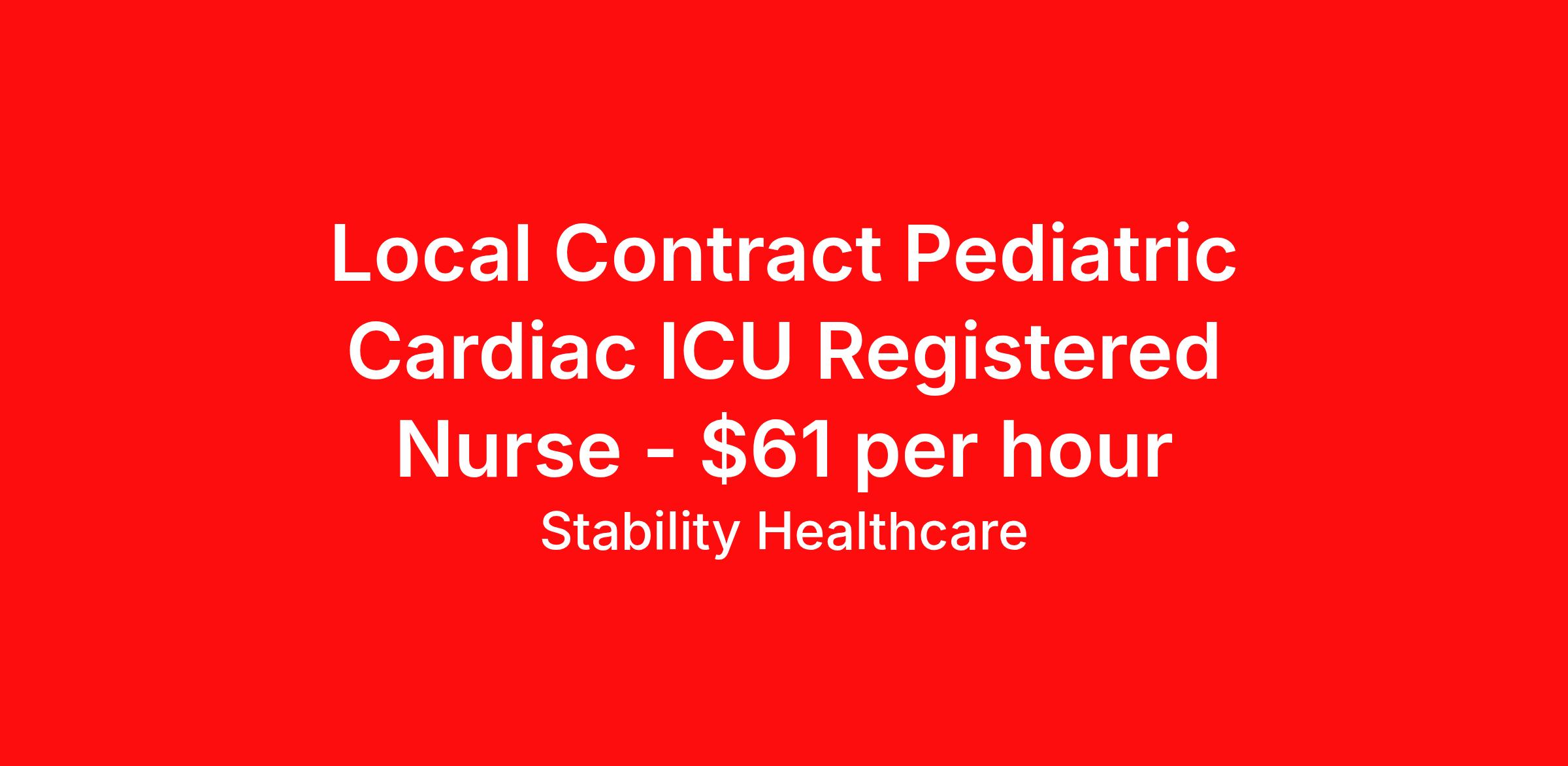 Stability Healthcare is seeking a local contract nurse RN CVPICU for a local contract nursing job in Omaha, Nebraska. Job Description & Requirements Specialty: CVPICU Discipline: RN Start Date: 04/13/2026 Duration: 13 weeks 36 hours per week Shift: 12 hours, nights Employment Type: Local Contract Stability Healthcare is looking for a CV PICU RN contract position in Omaha, NE. The primary focus of a CVICU is to provide comprehensive and specialized care for children who require advanced monitoring, interventions, and treatments to support their cardiac and vascular systems. This may include patients who have undergone cardiac surgery, have congenital heart defects, arrhythmias, or other complex cardiac conditions. The CVICU provides a range of advanced medical technologies and equipment to support the complex needs of these patients, including specialized ventilators, cardiac monitors, extracorporeal membrane oxygenation (ECMO), and other life-sustaining devices. *$600 travel bonus *Day 1 health insurance with United Healthcare *PTO plan start accruing on day 1, use during contract or cash out at the end! *Guaranteed stipend if facility calls you off *Extra hour bonus earn an additional hourly bonus for working over your weekly contracted hours Stability Job ID L-822325. Pay package is based on 12 hour shifts and 36 hours per week (subject to confirmation) with tax-free stipend amount to be determined. Posted job title: CV PICU About Stability Healthcare Stability Healthcare was founded in 2009, with the mission of becoming the best Travel Nursing Agency in California. We have been rated one of the top travel nursing agencies and offer our nurses the highest paying travel nursing jobs available. We have access to the best travel assignments from 1000’s of facilities. You can start the year off in sunny California, spend the Spring in the Colorado Rockies, enjoy the Summer in the Mid-West, experience the change of seasons in Boston and New York, and hit the beaches of Florida in the winter. Our Nurses work in the best hospitals and health systems in the country. Benefits Guaranteed Hours Benefits start day 1