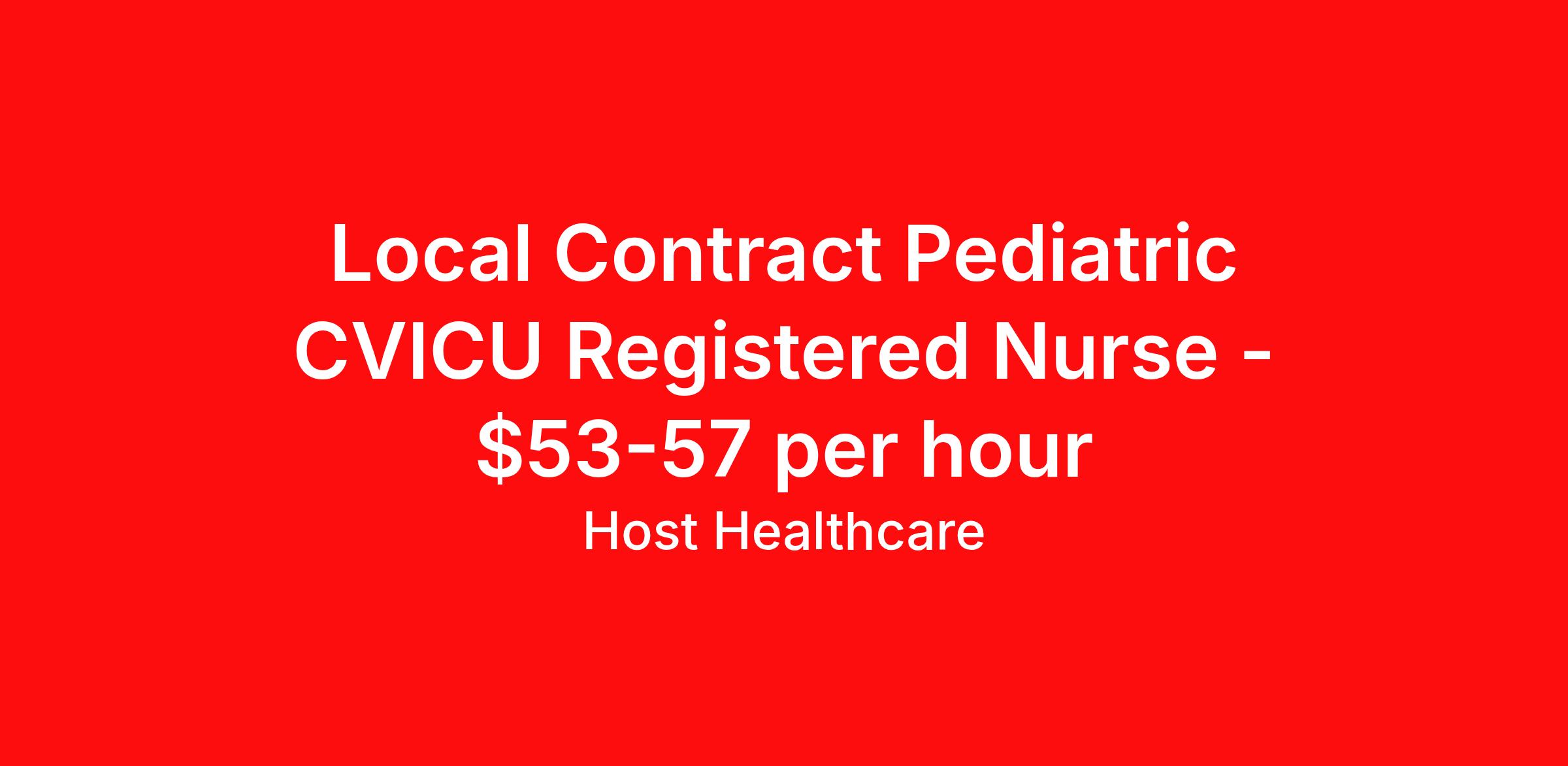 Local Contract Pediatric CVICU Registered Nurse - $53-57 per hour