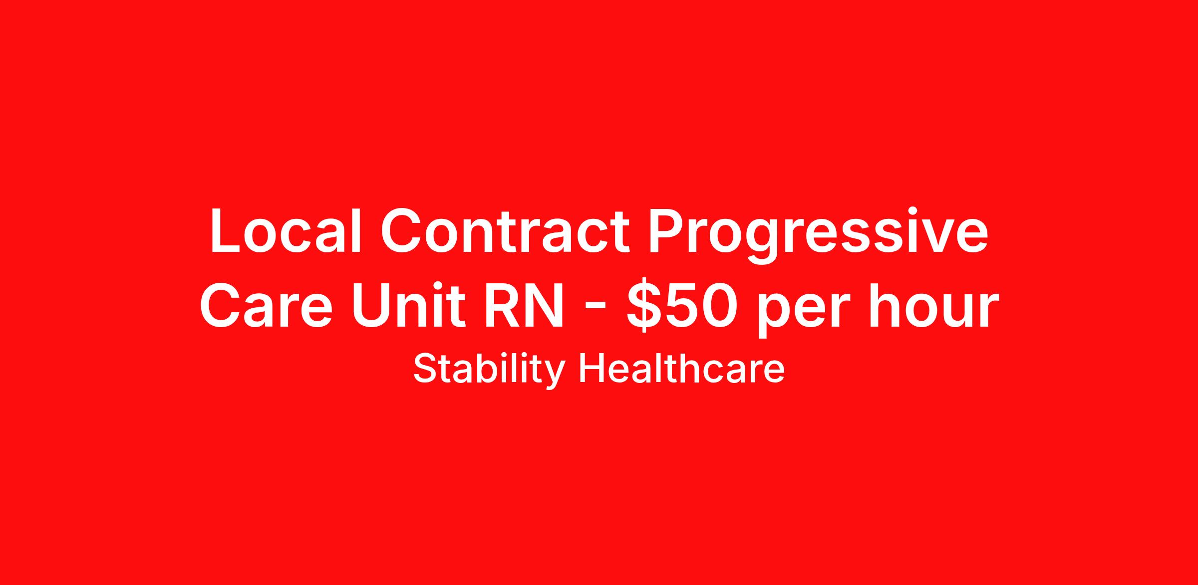 Stability Healthcare is seeking a local contract nurse RN PCU - Progressive Care Unit for a local contract nursing job in Overland Park, Kansas. Job Description & Requirements Specialty: PCU - Progressive Care Unit Discipline: RN Start Date: 04/20/2026 Duration: 13 weeks 36 hours per week Shift: 12 hours, nights Employment Type: Local Contract Stability Healthcare is looking for a Rehab RN contract position in Overland Park, KS. Rehabilitation Nurses help patients, who still require some nursing care, adapt physically and emotionally to lifestyle changes and teaches them new skills as well as providing other nursing care. The primary goals of a Rehab Nurse is to help patients attain or maintain maximum function. *$600 travel bonus *Day 1 health insurance with United Healthcare *PTO plan start accruing on day 1, use during contract or cash out at the end! *Guaranteed stipend if facility calls you off *Extra hour bonus earn an additional hourly bonus for working over your weekly contracted hours Stability Job ID L-820257. Pay package is based on 12 hour shifts and 36 hours per week (subject to confirmation) with tax-free stipend amount to be determined. Posted job title: Rehab About Stability Healthcare Stability Healthcare was founded in 2009, with the mission of becoming the best Travel Nursing Agency in California. We have been rated one of the top travel nursing agencies and offer our nurses the highest paying travel nursing jobs available. We have access to the best travel assignments from 1000’s of facilities. You can start the year off in sunny California, spend the Spring in the Colorado Rockies, enjoy the Summer in the Mid-West, experience the change of seasons in Boston and New York, and hit the beaches of Florida in the winter. Our Nurses work in the best hospitals and health systems in the country. Benefits Guaranteed Hours Benefits start day 1