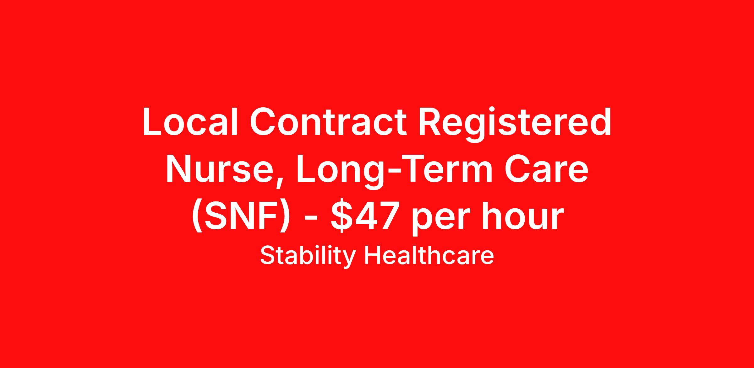 Stability Healthcare is seeking a local contract nurse RN Long Term Care for a local contract nursing job in Tonasket, Washington. Job Description & Requirements Specialty: Long Term Care Discipline: RN Duration: 13 weeks 40 hours per week Shift: 8 hours, evenings Employment Type: Local Contract Stability Healthcare is looking for a SNF/LTC RN contract position in Tonasket, WA. Under indirect supervision, long term care and skilled nurses perform a variety of patient care duties for patients at a facilities often off site from a hospital. Long-term care nurses provide direct patient care, often assisting patients with tasks in their everyday lives. *$600 travel bonus *Day 1 health insurance with United Healthcare *PTO plan start accruing on day 1, use during contract or cash out at the end! *Guaranteed stipend if facility calls you off *Extra hour bonus earn an additional hourly bonus for working over your weekly contracted hours Stability Job ID L-825639. Pay package is based on 8 hour shifts and 40 hours per week (subject to confirmation) with tax-free stipend amount to be determined. Posted job title: SNF/LTC About Stability Healthcare Stability Healthcare was founded in 2009, with the mission of becoming the best Travel Nursing Agency in California. We have been rated one of the top travel nursing agencies and offer our nurses the highest paying travel nursing jobs available. We have access to the best travel assignments from 1000’s of facilities. You can start the year off in sunny California, spend the Spring in the Colorado Rockies, enjoy the Summer in the Mid-West, experience the change of seasons in Boston and New York, and hit the beaches of Florida in the winter. Our Nurses work in the best hospitals and health systems in the country. Benefits Guaranteed Hours Benefits start day 1