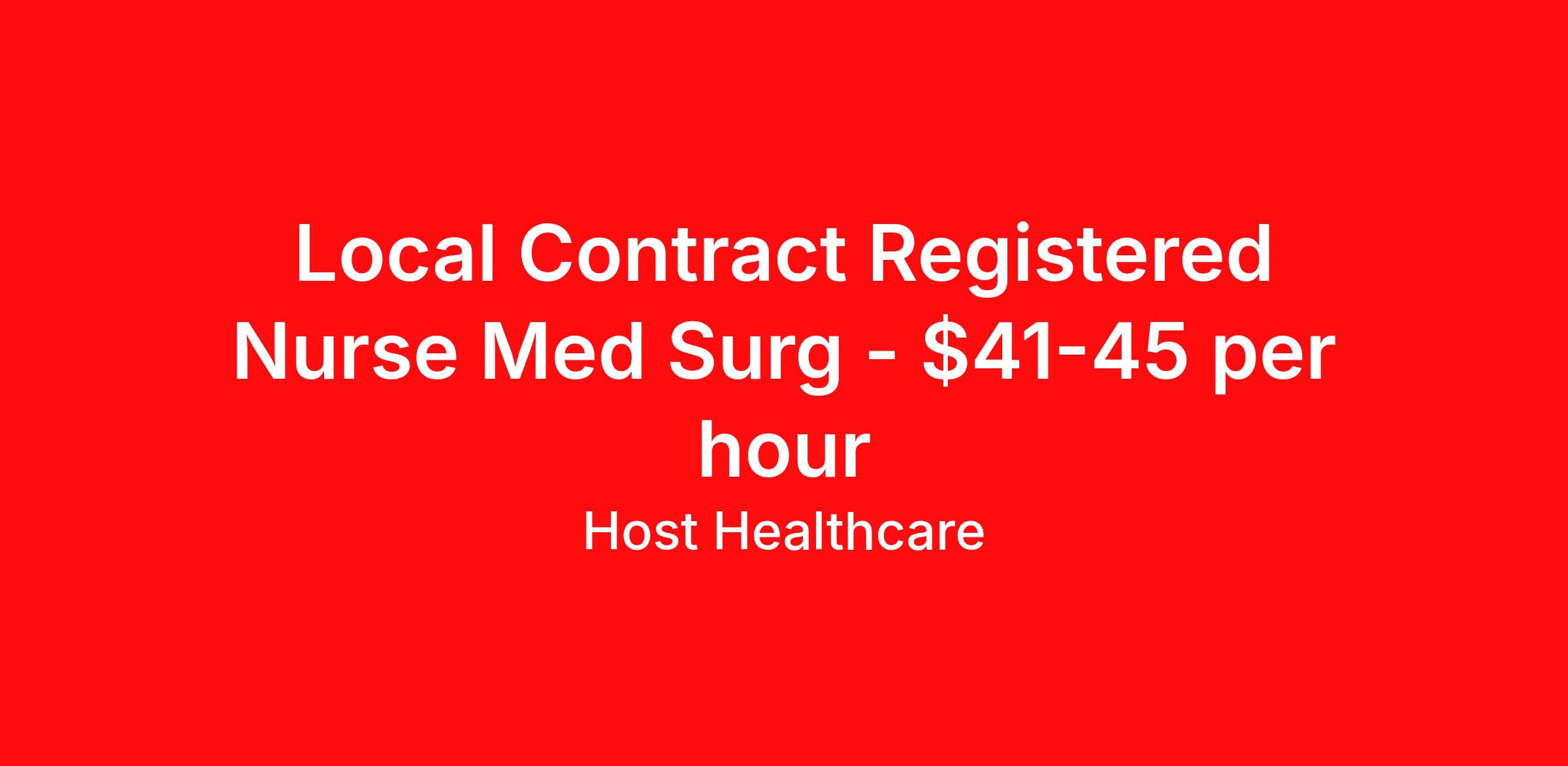 Host Healthcare is seeking a local contract nurse RN Med Surg for a local contract nursing job in St. Louis, Missouri. Job Description & Requirements Specialty: Med Surg Discipline: RN Start Date: 03/31/2026 Duration: 13 weeks 36 hours per week Shift: 12 hours, nights Employment Type: Local Contract Host Healthcare Job ID La1fVX000002vVnVYAU. Pay package is based on 12 hour shifts and 36 hours per week (subject to confirmation) with tax-free stipend amount to be determined. Posted job title: RN - Medical-Surgical About Host Healthcare At Host Healthcare, we provide a truly comfortable experience as you explore your travel nursing, therapy, or allied career. We make your travel healthcare journey easy by taking care of all the details, so you don’t have to. We are on a mission to help others live better and we do this by helping the healers of the world be as comfortable as possible. With access to tens of thousands of travel nursing, therapy, and allied jobs in all 50 states, our responsive and friendly recruiters find your dream position based on what’s important to you. During your assignment, get access to premium benefits, including Day 1 medical that continues up to 30 days between assignments, 401K matching, travel reimbursements, dedicated housing support, and more. We also offer 24/7 support from our team and access to our on-staff clinicians so you can feel comfortable and confident throughout your entire assignment. Travel comfortably with Host Healthcare. Benefits Referral bonus School loan reimbursement Vision benefits Wellness and fitness programs Company provided housing options License and certification reimbursement Life insurance Medical benefits Mileage reimbursement Pet insurance Discount program Employee assistance programs Guaranteed Hours Health savings account Holiday Pay 401k retirement plan Continuing Education Dental benefits