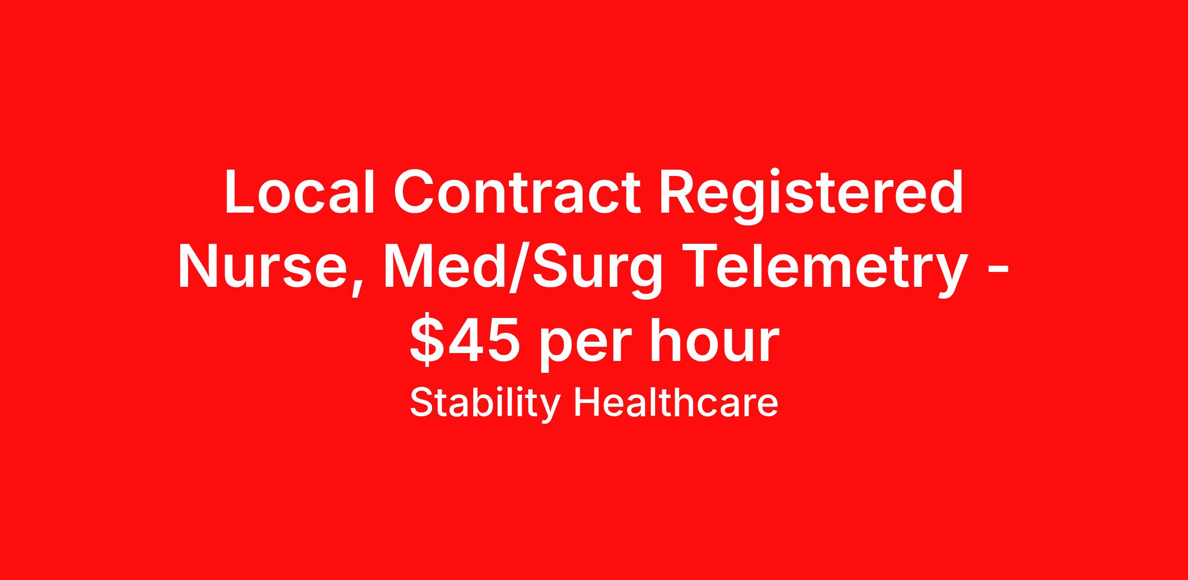 Stability Healthcare is seeking a local contract nurse RN Med Surg / Telemetry for a local contract nursing job in Oklahoma City, Oklahoma. Job Description & Requirements Specialty: Med Surg / Telemetry Discipline: RN Start Date: 04/14/2026 Duration: 12 weeks 36 hours per week Shift: 12 hours, nights Employment Type: Local Contract Stability Healthcare is looking for a Tele Med-Surg RN contract position in Oklahoma City, OK. The Medical Surgical Telemetry Registered Nurse (RN) provides direct nursing care in accordance with established policies, procedures and protocols of the healthcare organization often specializing in Neuro, Ortho or Cardiac patients. *$600 travel bonus *Day 1 health insurance with United Healthcare *PTO plan start accruing on day 1, use during contract or cash out at the end! *Guaranteed stipend if facility calls you off *Extra hour bonus earn an additional hourly bonus for working over your weekly contracted hours Stability Job ID L-827015. Pay package is based on 12 hour shifts and 36 hours per week (subject to confirmation) with tax-free stipend amount to be determined. Posted job title: Tele Med-Surg About Stability Healthcare Stability Healthcare was founded in 2009, with the mission of becoming the best Travel Nursing Agency in California. We have been rated one of the top travel nursing agencies and offer our nurses the highest paying travel nursing jobs available. We have access to the best travel assignments from 1000’s of facilities. You can start the year off in sunny California, spend the Spring in the Colorado Rockies, enjoy the Summer in the Mid-West, experience the change of seasons in Boston and New York, and hit the beaches of Florida in the winter. Our Nurses work in the best hospitals and health systems in the country. Benefits Guaranteed Hours Benefits start day 1