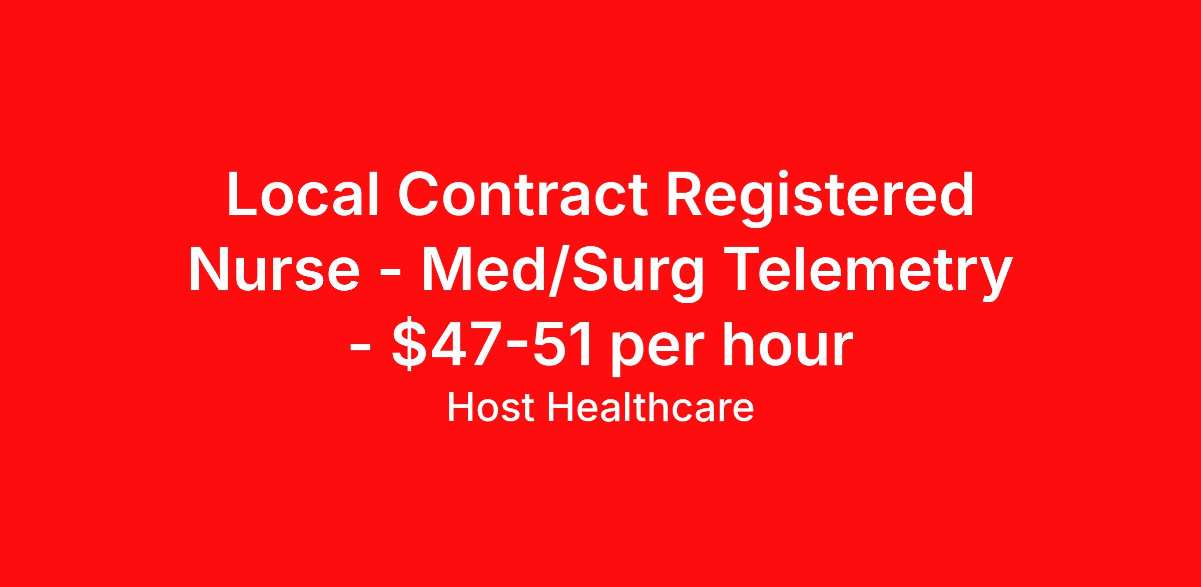 Local Contract Registered Nurse - Med/Surg Telemetry - $47-51 per hour