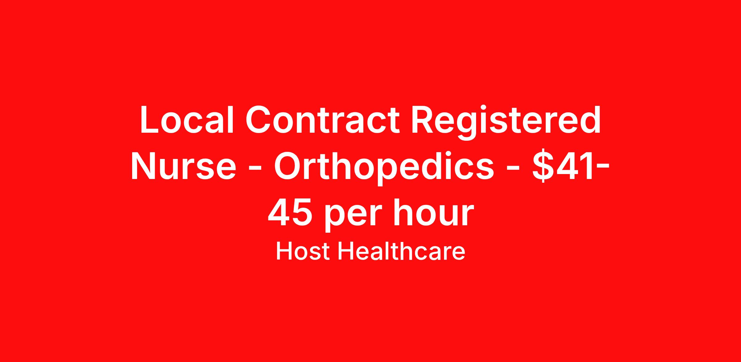 Local Contract Registered Nurse - Orthopedics - $41-45 per hour