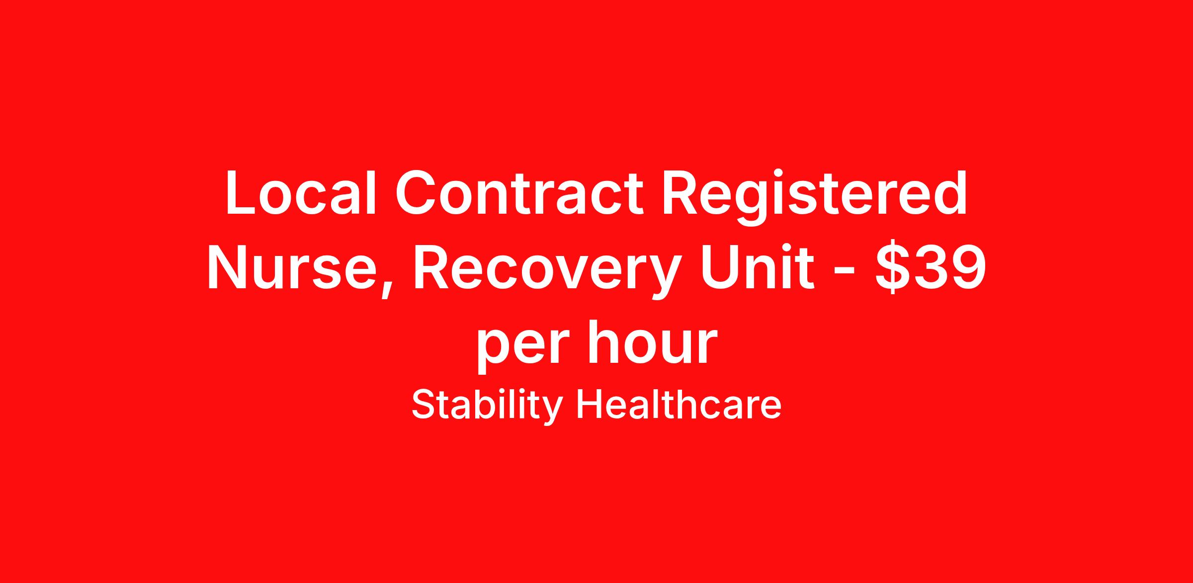 Stability Healthcare is seeking a local contract nurse RN PACU - Post Anesthesia Care for a local contract nursing job in Cumming, Georgia. Job Description & Requirements Specialty: PACU - Post Anesthesia Care Discipline: RN Start Date: 04/13/2026 Duration: 13 weeks 36 hours per week Shift: 12 hours, days Employment Type: Local Contract Stability Healthcare is looking for a Rehab RN contract position in Cumming, GA. Rehabilitation Nurses help patients, who still require some nursing care, adapt physically and emotionally to lifestyle changes and teaches them new skills as well as providing other nursing care. The primary goals of a Rehab Nurse is to help patients attain or maintain maximum function. *$600 travel bonus *Day 1 health insurance with United Healthcare *PTO plan start accruing on day 1, use during contract or cash out at the end! *Guaranteed stipend if facility calls you off *Extra hour bonus earn an additional hourly bonus for working over your weekly contracted hours Stability Job ID L-827697. Pay package is based on 12 hour shifts and 36 hours per week (subject to confirmation) with tax-free stipend amount to be determined. Posted job title: Rehab About Stability Healthcare Stability Healthcare was founded in 2009, with the mission of becoming the best Travel Nursing Agency in California. We have been rated one of the top travel nursing agencies and offer our nurses the highest paying travel nursing jobs available. We have access to the best travel assignments from 1000’s of facilities. You can start the year off in sunny California, spend the Spring in the Colorado Rockies, enjoy the Summer in the Mid-West, experience the change of seasons in Boston and New York, and hit the beaches of Florida in the winter. Our Nurses work in the best hospitals and health systems in the country. Benefits Guaranteed Hours Benefits start day 1