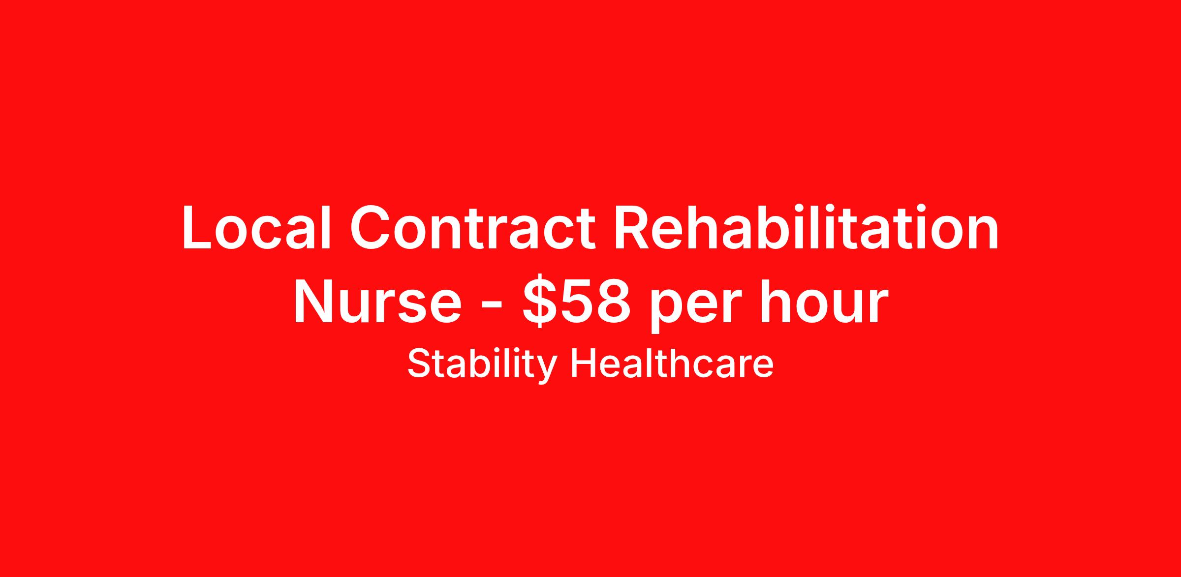Stability Healthcare is seeking a local contract nurse RN Rehabilitation for a local contract nursing job in Albany, New York. Job Description & Requirements Specialty: Rehabilitation Discipline: RN Duration: 13 weeks 36 hours per week Shift: 12 hours, nights Employment Type: Local Contract Stability Healthcare is looking for a Rehab RN contract position in Albany, NY. Rehabilitation Nurses help patients, who still require some nursing care, adapt physically and emotionally to lifestyle changes and teaches them new skills as well as providing other nursing care. The primary goals of a Rehab Nurse is to help patients attain or maintain maximum function. *$600 travel bonus *Day 1 health insurance with United Healthcare *PTO plan start accruing on day 1, use during contract or cash out at the end! *Guaranteed stipend if facility calls you off *Extra hour bonus earn an additional hourly bonus for working over your weekly contracted hours Stability Job ID L-824697. Pay package is based on 12 hour shifts and 36 hours per week (subject to confirmation) with tax-free stipend amount to be determined. Posted job title: Rehab About Stability Healthcare Stability Healthcare was founded in 2009, with the mission of becoming the best Travel Nursing Agency in California. We have been rated one of the top travel nursing agencies and offer our nurses the highest paying travel nursing jobs available. We have access to the best travel assignments from 1000’s of facilities. You can start the year off in sunny California, spend the Spring in the Colorado Rockies, enjoy the Summer in the Mid-West, experience the change of seasons in Boston and New York, and hit the beaches of Florida in the winter. Our Nurses work in the best hospitals and health systems in the country. Benefits Guaranteed Hours Benefits start day 1