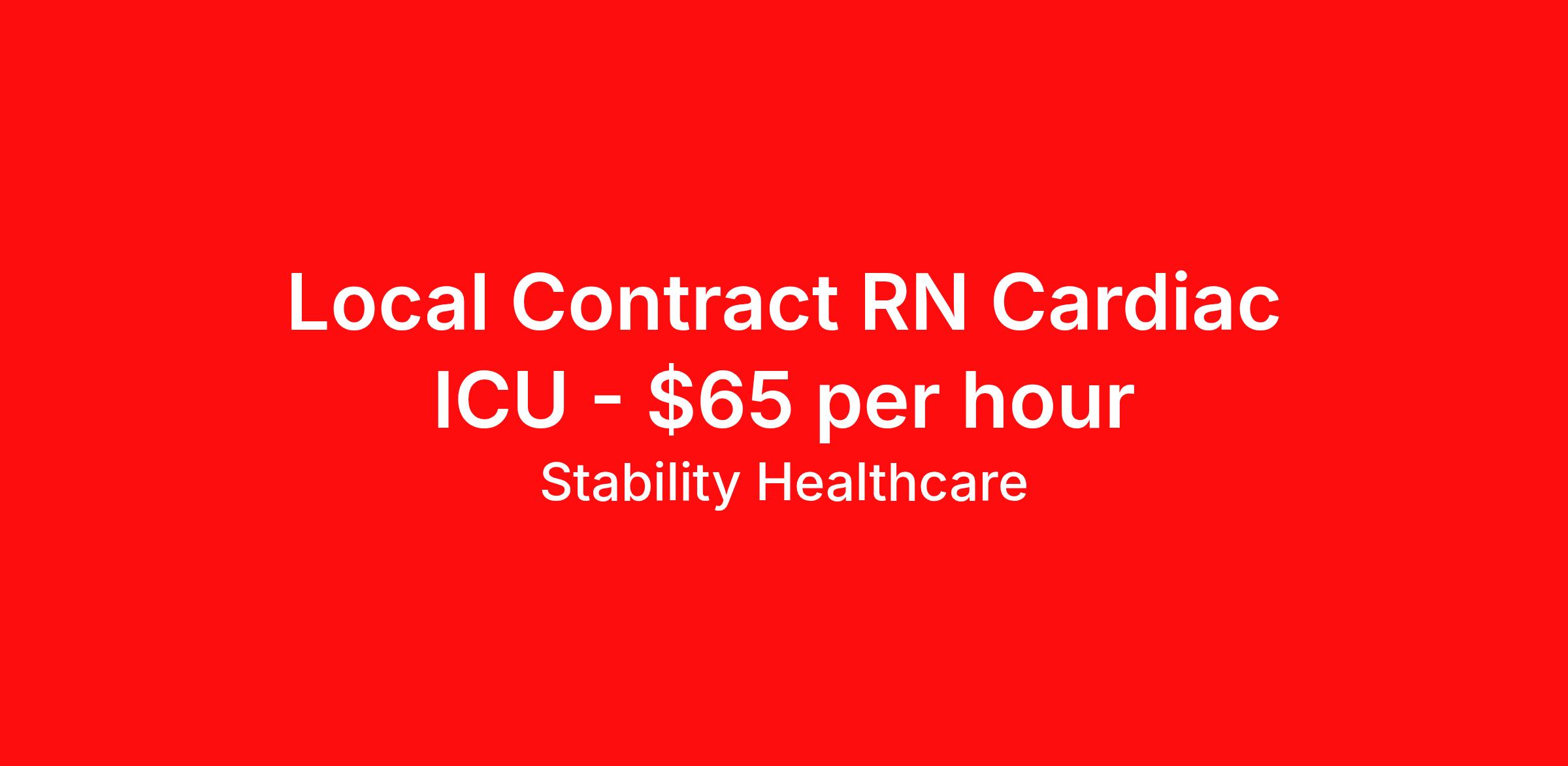 Stability Healthcare is seeking a local contract nurse RN CVICU for a local contract nursing job in Falls Church, Virginia. Job Description & Requirements Specialty: CVICU Discipline: RN Duration: 13 weeks 36 hours per week Shift: 12 hours Employment Type: Local Contract Stability Healthcare is looking for a CVICU RN contract position in Falls Church, VA. Nurses working in the cardiovascular intensive care unit provide care for patients recovering from open-heart surgery and heart transplants. CVICU Nurses observe changes, perform diagnostics tests, analyze charts, and record medical histories of patients. *$600 travel bonus *Day 1 health insurance with United Healthcare *PTO plan start accruing on day 1, use during contract or cash out at the end! *Guaranteed stipend if facility calls you off *Extra hour bonus earn an additional hourly bonus for working over your weekly contracted hours Stability Job ID L-838069. Pay package is based on 12 hour shifts and 36 hours per week (subject to confirmation) with tax-free stipend amount to be determined. Posted job title: CVICU About Stability Healthcare Stability Healthcare was founded in 2009, with the mission of becoming the best Travel Nursing Agency in California. We have been rated one of the top travel nursing agencies and offer our nurses the highest paying travel nursing jobs available. We have access to the best travel assignments from 1000’s of facilities. You can start the year off in sunny California, spend the Spring in the Colorado Rockies, enjoy the Summer in the Mid-West, experience the change of seasons in Boston and New York, and hit the beaches of Florida in the winter. Our Nurses work in the best hospitals and health systems in the country. Benefits Guaranteed Hours Benefits start day 1