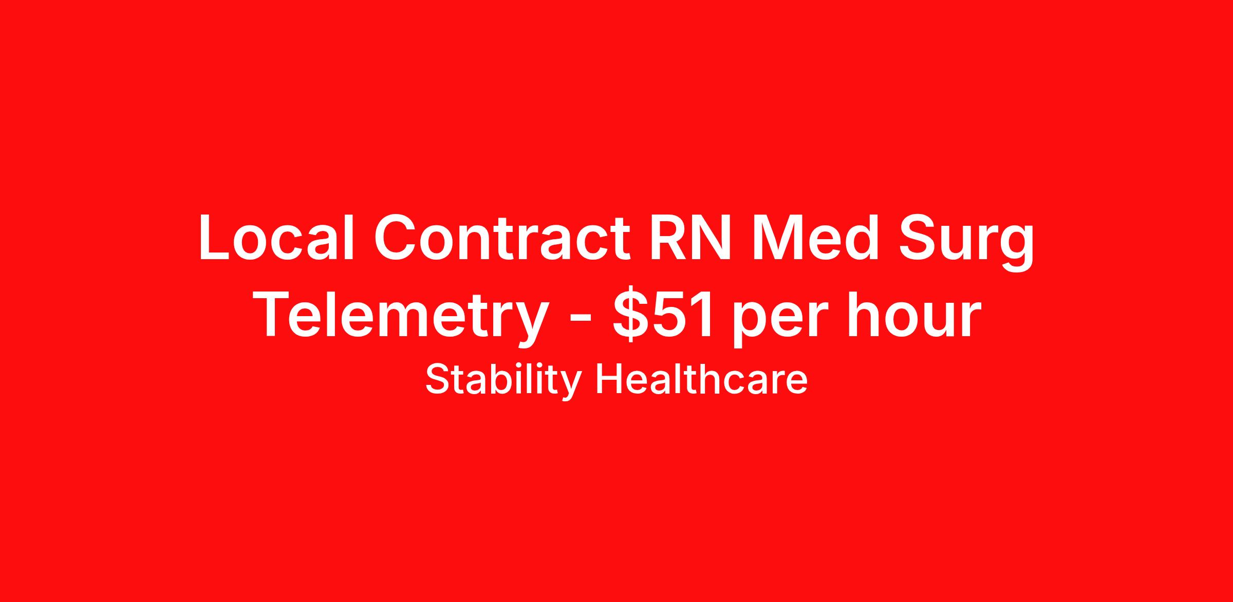 Stability Healthcare is seeking a local contract nurse RN Med Surg / Telemetry for a local contract nursing job in Ottumwa, Iowa. Job Description & Requirements Specialty: Med Surg / Telemetry Discipline: RN Duration: 13 weeks 36 hours per week Shift: 12 hours, nights Employment Type: Local Contract Stability Healthcare is looking for a Tele Med-Surg RN contract position in Ottumwa, IA. The Medical Surgical Telemetry Registered Nurse (RN) provides direct nursing care in accordance with established policies, procedures and protocols of the healthcare organization often specializing in Neuro, Ortho or Cardiac patients. *$600 travel bonus *Day 1 health insurance with United Healthcare *PTO plan start accruing on day 1, use during contract or cash out at the end! *Guaranteed stipend if facility calls you off *Extra hour bonus earn an additional hourly bonus for working over your weekly contracted hours Stability Job ID L-824239. Pay package is based on 12 hour shifts and 36 hours per week (subject to confirmation) with tax-free stipend amount to be determined. Posted job title: Tele Med-Surg About Stability Healthcare Stability Healthcare was founded in 2009, with the mission of becoming the best Travel Nursing Agency in California. We have been rated one of the top travel nursing agencies and offer our nurses the highest paying travel nursing jobs available. We have access to the best travel assignments from 1000’s of facilities. You can start the year off in sunny California, spend the Spring in the Colorado Rockies, enjoy the Summer in the Mid-West, experience the change of seasons in Boston and New York, and hit the beaches of Florida in the winter. Our Nurses work in the best hospitals and health systems in the country. Benefits Guaranteed Hours Benefits start day 1