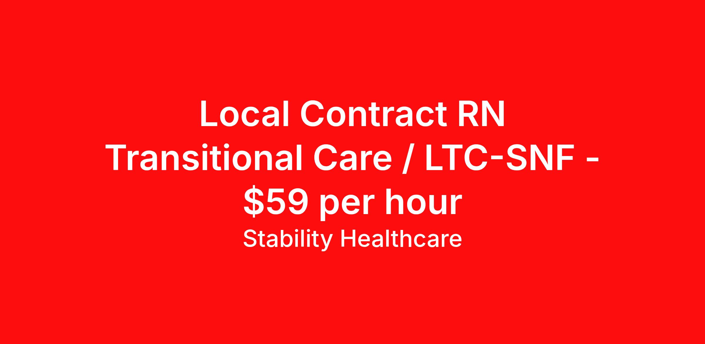 Stability Healthcare is seeking a local contract nurse RN Transitional Care Unit for a local contract nursing job in Portland, Maine. Job Description & Requirements Specialty: Transitional Care Unit Discipline: RN Start Date: 04/12/2026 Duration: 13 weeks 48 hours per week Shift: 12 hours, nights Employment Type: Local Contract Stability Healthcare is looking for a Med-Surg RN contract position in Portland, ME. The majority of hospitalized patients are admitted to M/S either directly or after surgery. M/S is also where patients who have been in critical care (ICU) are transferred when they no longer need critical care but still require nursing care. *$600 travel bonus *Day 1 health insurance with United Healthcare *PTO plan start accruing on day 1, use during contract or cash out at the end! *Guaranteed stipend if facility calls you off *Extra hour bonus earn an additional hourly bonus for working over your weekly contracted hours Stability Job ID L-828208. Pay package is based on 12 hour shifts and 48 hours per week (subject to confirmation) with tax-free stipend amount to be determined. Posted job title: Med-Surg About Stability Healthcare Stability Healthcare was founded in 2009, with the mission of becoming the best Travel Nursing Agency in California. We have been rated one of the top travel nursing agencies and offer our nurses the highest paying travel nursing jobs available. We have access to the best travel assignments from 1000’s of facilities. You can start the year off in sunny California, spend the Spring in the Colorado Rockies, enjoy the Summer in the Mid-West, experience the change of seasons in Boston and New York, and hit the beaches of Florida in the winter. Our Nurses work in the best hospitals and health systems in the country. Benefits Guaranteed Hours Benefits start day 1