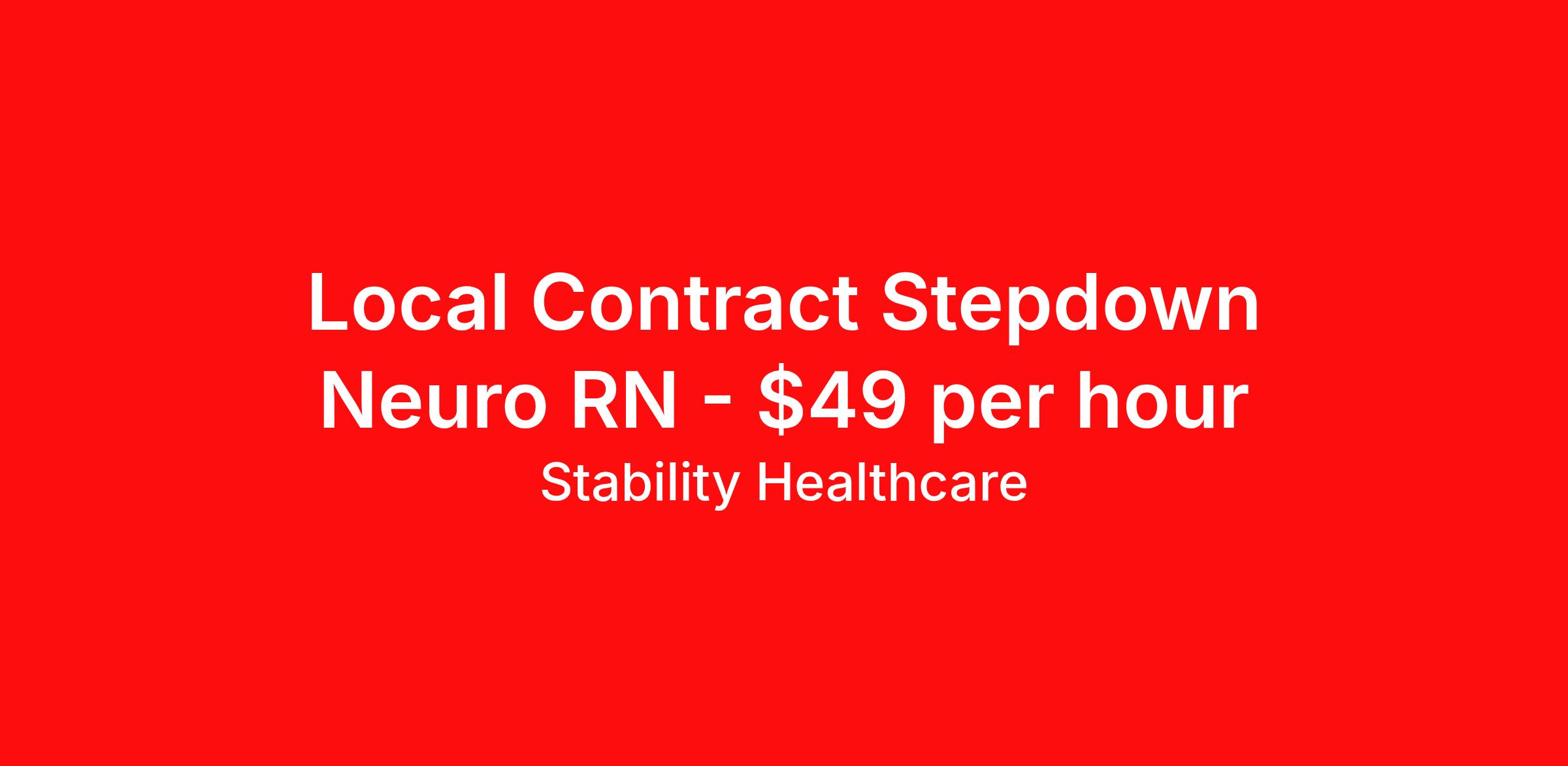 Stability Healthcare is seeking a local contract nurse RN Neuro PCU - Progressive Care Unit for a local contract nursing job in Greensboro, North Carolina. Job Description & Requirements Specialty: Neuro PCU - Progressive Care Unit Discipline: RN Duration: 13 weeks 36 hours per week Shift: 12 hours, nights Employment Type: Local Contract Stability Healthcare is looking for a Tele Step-Down RN contract position in Greensboro, NC. The PCU nurse is sometimes also called a step-down nurse and the PCU is also known as cardiac stepdown, medical stepdown, neuro stepdown, surgical stepdown and ER holding. PCU nursing jobs traditionally operate between the levels of general and ICU care, and more recently, in the field of critical care, as well. *$600 travel bonus *Day 1 health insurance with United Healthcare *PTO plan start accruing on day 1, use during contract or cash out at the end! *Guaranteed stipend if facility calls you off *Extra hour bonus earn an additional hourly bonus for working over your weekly contracted hours Stability Job ID L-823894. Pay package is based on 12 hour shifts and 36 hours per week (subject to confirmation) with tax-free stipend amount to be determined. Posted job title: Tele Step-Down About Stability Healthcare Stability Healthcare was founded in 2009, with the mission of becoming the best Travel Nursing Agency in California. We have been rated one of the top travel nursing agencies and offer our nurses the highest paying travel nursing jobs available. We have access to the best travel assignments from 1000’s of facilities. You can start the year off in sunny California, spend the Spring in the Colorado Rockies, enjoy the Summer in the Mid-West, experience the change of seasons in Boston and New York, and hit the beaches of Florida in the winter. Our Nurses work in the best hospitals and health systems in the country. Benefits Guaranteed Hours Benefits start day 1