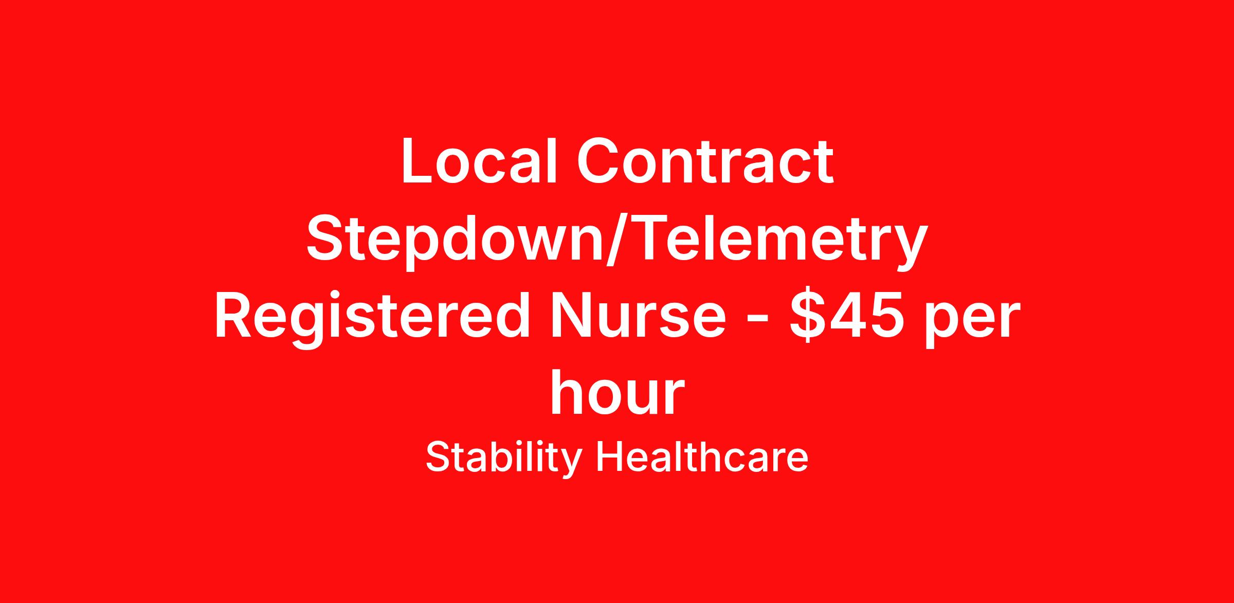 Stability Healthcare is seeking a local contract nurse RN Stepdown for a local contract nursing job in Morgantown, West Virginia. Job Description & Requirements Specialty: Stepdown Discipline: RN Duration: 13 weeks 36 hours per week Shift: 12 hours, nights Employment Type: Local Contract Stability Healthcare is looking for a Med-Surg RN contract position in Morgantown, WV. The majority of hospitalized patients are admitted to M/S either directly or after surgery. M/S is also where patients who have been in critical care (ICU) are transferred when they no longer need critical care but still require nursing care. *$600 travel bonus *Day 1 health insurance with United Healthcare *PTO plan start accruing on day 1, use during contract or cash out at the end! *Guaranteed stipend if facility calls you off *Extra hour bonus earn an additional hourly bonus for working over your weekly contracted hours Stability Job ID L-827688. Pay package is based on 12 hour shifts and 36 hours per week (subject to confirmation) with tax-free stipend amount to be determined. Posted job title: Med-Surg About Stability Healthcare Stability Healthcare was founded in 2009, with the mission of becoming the best Travel Nursing Agency in California. We have been rated one of the top travel nursing agencies and offer our nurses the highest paying travel nursing jobs available. We have access to the best travel assignments from 1000’s of facilities. You can start the year off in sunny California, spend the Spring in the Colorado Rockies, enjoy the Summer in the Mid-West, experience the change of seasons in Boston and New York, and hit the beaches of Florida in the winter. Our Nurses work in the best hospitals and health systems in the country. Benefits Guaranteed Hours Benefits start day 1