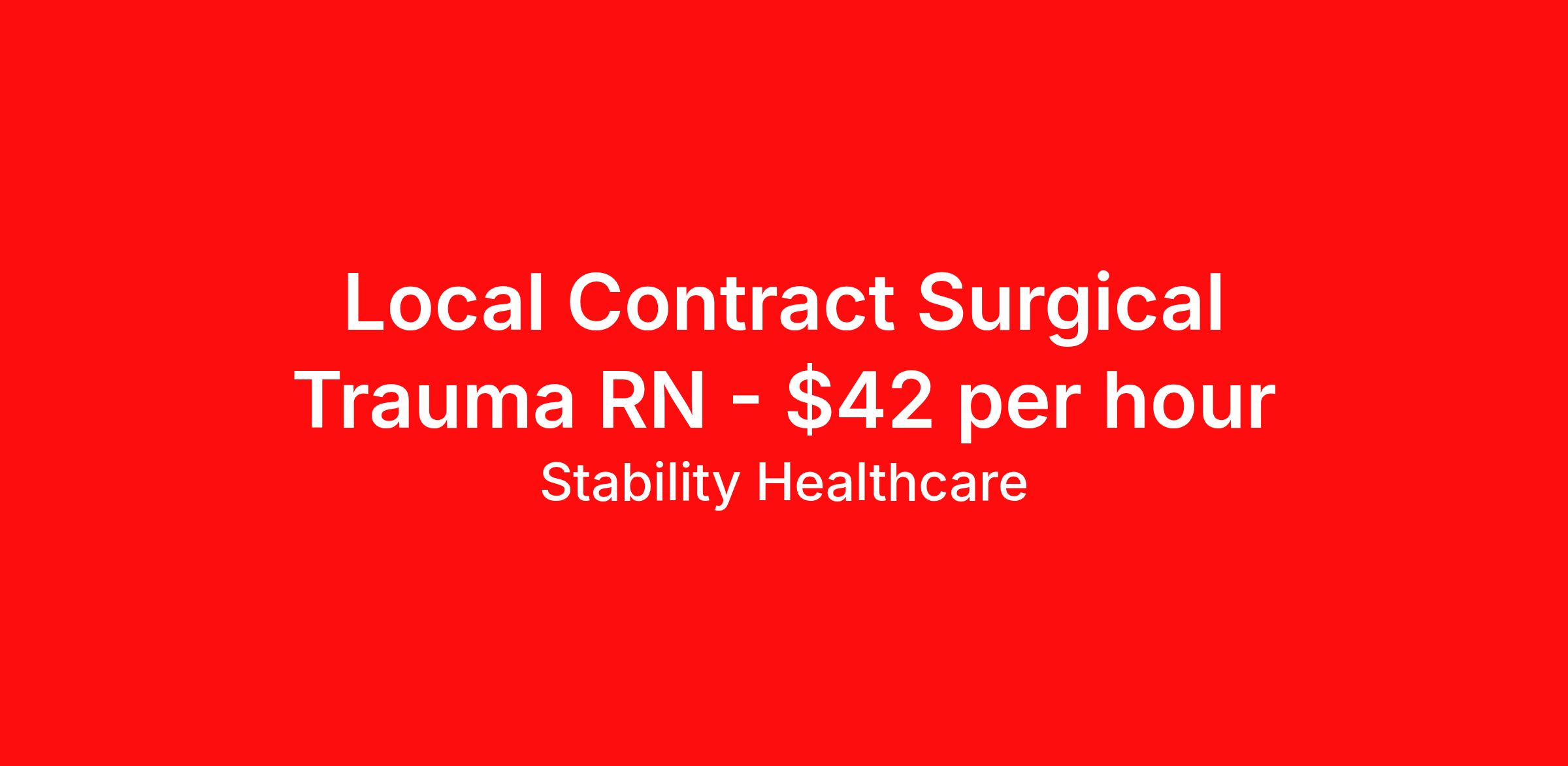 Stability Healthcare is seeking a local contract nurse RN Trauma for a local contract nursing job in Atlanta, Georgia. Job Description & Requirements Specialty: Trauma Discipline: RN Duration: 8 weeks 36 hours per week Shift: 12 hours, days Employment Type: Local Contract Stability Healthcare is looking for a Med-Surg RN contract position in Atlanta, GA. The majority of hospitalized patients are admitted to M/S either directly or after surgery. M/S is also where patients who have been in critical care (ICU) are transferred when they no longer need critical care but still require nursing care. *$600 travel bonus *Day 1 health insurance with United Healthcare *PTO plan start accruing on day 1, use during contract or cash out at the end! *Guaranteed stipend if facility calls you off *Extra hour bonus earn an additional hourly bonus for working over your weekly contracted hours Stability Job ID L-823353. Pay package is based on 12 hour shifts and 36 hours per week (subject to confirmation) with tax-free stipend amount to be determined. Posted job title: Med-Surg About Stability Healthcare Stability Healthcare was founded in 2009, with the mission of becoming the best Travel Nursing Agency in California. We have been rated one of the top travel nursing agencies and offer our nurses the highest paying travel nursing jobs available. We have access to the best travel assignments from 1000’s of facilities. You can start the year off in sunny California, spend the Spring in the Colorado Rockies, enjoy the Summer in the Mid-West, experience the change of seasons in Boston and New York, and hit the beaches of Florida in the winter. Our Nurses work in the best hospitals and health systems in the country. Benefits Guaranteed Hours Benefits start day 1