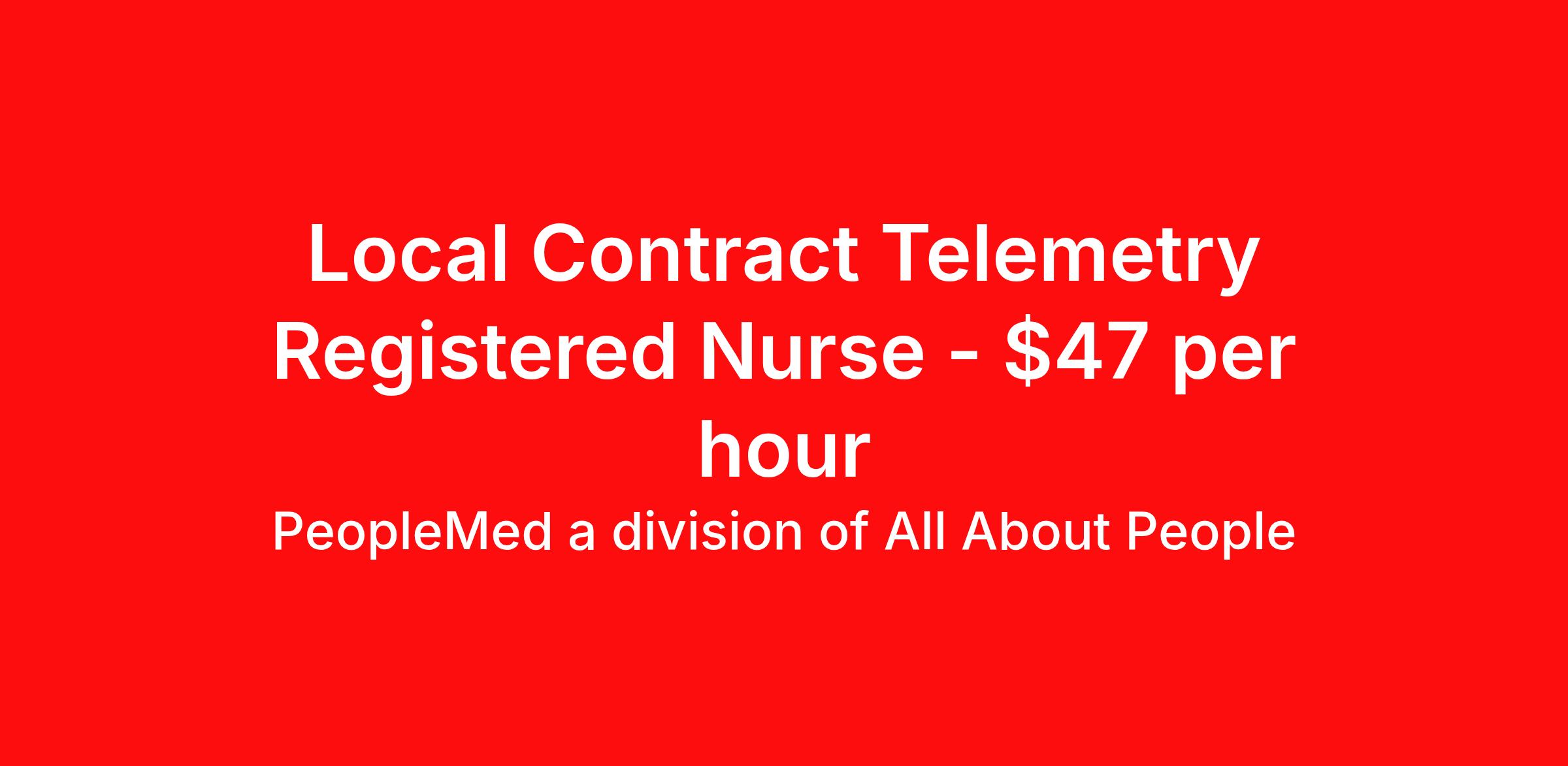 PeopleMed a division of All About People is seeking a local contract nurse RN Telemetry Med Surg for a local contract nursing job in Louisville, Kentucky. Job Description & Requirements Specialty: Telemetry Discipline: RN Start Date: 04/12/2026 Duration: 13 weeks 36 hours per week Shift: 12 hours, nights Employment Type: Local Contract Local Rate Must reside 75 miles from facility for travel rate NAH-5th Floor , 5E/5W Cardiac Tele/Mixed Acuity (NAH) , 59 beds total , Ratio: 4–6:1 , EPIC , Galaxy Blue (not provided) , Fast-paced cardiac focus , RN reads tele, titrates , Dx: cath, stress test , Meds: milrinone, dobutamine, heparin, amio , Equip: dynamaps, tele monitors. Shift: 645p-715a, every other weekend Required: BLS, NIH, 2 years RN experience, KY license at submission, Epic experience, tele experience PeopleMed a division of All About People Job ID 3024. About PeopleMed a division of All About People PeopleMed works with the best and the brightest medical professionals developing deep relationships with every clinician on our team. We understand the demand for excellence, efficient service and timely follow up, while never compromising. We are honored to represent our registry to ensure that all of their individual needs are met every step of the way. Transparent communication and a nurse-first approach. PeopleMed offers competitive hourly rates . Potential for stipends, bonuses, overtime, and benefits (health insurance and 401(k). Flexible scheduling & work-life balance Opportunity to work in different healthcare settings (hospitals, clinics, long-term care, etc.). Dedicated recruiters and career advisors help with job placements and career advancement. Benefits 401k retirement plan