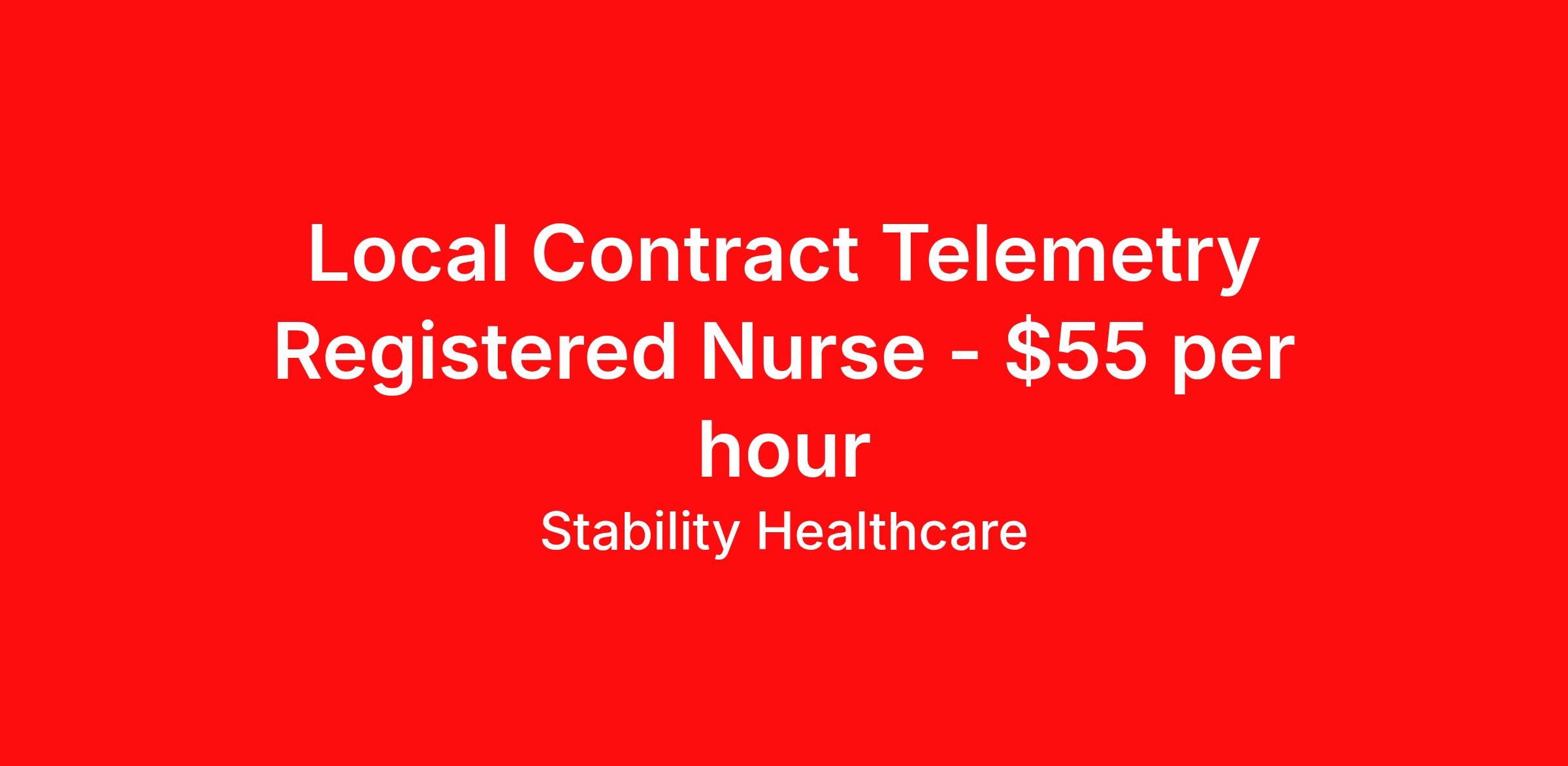 Stability Healthcare is seeking a local contract nurse RN Telemetry for a local contract nursing job in Alliance, Nebraska. Job Description & Requirements Specialty: Telemetry Discipline: RN Duration: 13 weeks 36 hours per week Shift: 12 hours, nights Employment Type: Local Contract Stability Healthcare is looking for a Telemetry RN contract position in Alliance, NE. Telemetry nurses care for patients by using medical equipment to monitor blood pressure, heart rate, blood oxygen level, breathing rate, and other vital signs. Commonly, these patients have recently undergone surgery. *$600 travel bonus *Day 1 health insurance with United Healthcare *PTO plan start accruing on day 1, use during contract or cash out at the end! *Guaranteed stipend if facility calls you off *Extra hour bonus earn an additional hourly bonus for working over your weekly contracted hours Stability Job ID L-736688. Pay package is based on 12 hour shifts and 36 hours per week (subject to confirmation) with tax-free stipend amount to be determined. Posted job title: Telemetry About Stability Healthcare Stability Healthcare was founded in 2009, with the mission of becoming the best Travel Nursing Agency in California. We have been rated one of the top travel nursing agencies and offer our nurses the highest paying travel nursing jobs available. We have access to the best travel assignments from 1000’s of facilities. You can start the year off in sunny California, spend the Spring in the Colorado Rockies, enjoy the Summer in the Mid-West, experience the change of seasons in Boston and New York, and hit the beaches of Florida in the winter. Our Nurses work in the best hospitals and health systems in the country. Benefits Guaranteed Hours Benefits start day 1