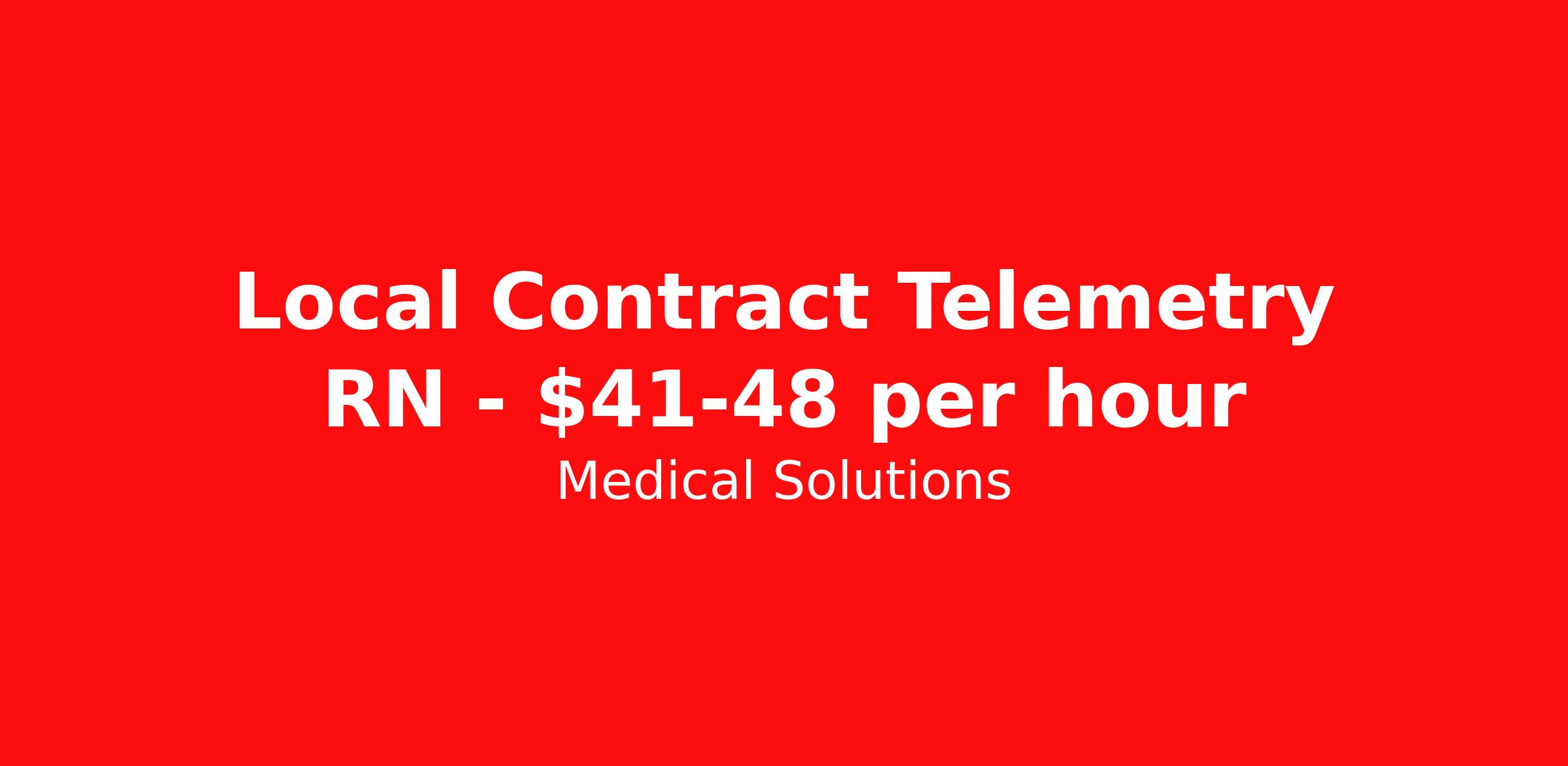 Medical Solutions is seeking a local contract nurse RN Telemetry for a local contract nursing job in Denver, Colorado. Job Description & Requirements Specialty: Telemetry Discipline: RN Duration: 13 weeks 36 hours per week Shift: 12 hours, nights Employment Type: Local Contract We’re seeking talented healthcare professionals whose adventure game is as strong as their clinical game. Those that want flexibility and high pay, we have the positions for you! Some of the industry-leading benefits enjoyed by Medical Solutions travel nurses and travel allied healthcare professionals include: Day One Medical, Dental, and Vision with low premiums Day One 401(k) with Company Contribution Personalized Compensation Packages Paid, Private, Fully Furnished, Pet-Friendly Housing Dedicated Recruiter and 24/7 Customer Care Line Per Diem Allowance and Paid Travel Licensure and Certification Reimbursement Free Liability Coverage Voluntary Benefits: Critical Illness, Hospital Indemnity, Accident, and Pet Insurance Equal Employment Opportunity And More! Estimated pay package based on bill rate at time job was posted. Bill rates can change frequently and without notice. Exact pay package may vary based on guaranteed hours, distance being traveled, and customizations available for travelers. Great Hospital in Colorado is looking for some help in their Med/Surg. Thirteen week contract, night shifts available. Please contact Medical Solutions at today to speak to a Career Consultant. Medical Solutions Job ID 1073904L. Posted job title: Telemetry About Medical Solutions At Medical Solutions, we’re people who care, helping people who care. No matter how you look at it, there’s a whole lot of care going on in our world and that’s just the way we like it. What do we do? Medical Solutions is one of the nation’s largest providers of total workforce solutions in the healthcare industry, connecting nurses and allied health clinicians with hospitals and healthcare systems across the country and around the corner. Through our family of brands, we also serve a segment of clients outside of the healthcare space. And we’re the very best at what we do. You’ll love our culture that’s filled with heart and soul. As a company and employer, we’re sincerely and unabashedly us. We lead as humans first and believe the unique qualities of each team member make us better together. We share a purpose for helping others and the drive to make a difference. And we offer endless opportunities for personal and professional growth, throughout your career. At Medical Solutions, you’ll find a great place to work and a career home. We’ve received Best Places to Work awards, landed top industry awards, and received accolades for the impact we’ve made in business and within our community. But the only way to really get to know us, is to join us. We think you’ll fit right in. Benefits Weekly pay Holiday Pay Guaranteed Hours Continuing Education 401k retirement plan Pet insurance Company provided housing options Cancelation protection Wellness and fitness programs Mileage reimbursement Referral bonus Employee assistance programs Medical benefits Dental benefits Vision benefits Benefits start day 1 License and certification reimbursement Life insurance Discount program