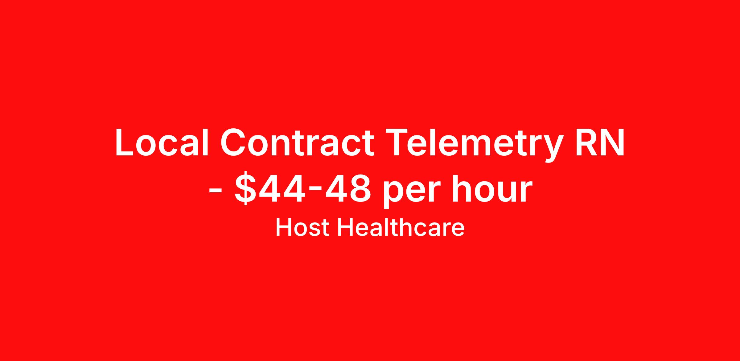 Host Healthcare is seeking a local contract nurse RN Telemetry for a local contract nursing job in St. Louis, Missouri. Job Description & Requirements Specialty: Telemetry Discipline: RN Start Date: 04/06/2026 Duration: 13 weeks 36 hours per week Shift: 12 hours, nights Employment Type: Local Contract Host Healthcare Job ID La1fVX000002vVvZYAU. Pay package is based on 12 hour shifts and 36 hours per week (subject to confirmation) with tax-free stipend amount to be determined. Posted job title: RN - Telemetry About Host Healthcare At Host Healthcare, we provide a truly comfortable experience as you explore your travel nursing, therapy, or allied career. We make your travel healthcare journey easy by taking care of all the details, so you don’t have to. We are on a mission to help others live better and we do this by helping the healers of the world be as comfortable as possible. With access to tens of thousands of travel nursing, therapy, and allied jobs in all 50 states, our responsive and friendly recruiters find your dream position based on what’s important to you. During your assignment, get access to premium benefits, including Day 1 medical that continues up to 30 days between assignments, 401K matching, travel reimbursements, dedicated housing support, and more. We also offer 24/7 support from our team and access to our on-staff clinicians so you can feel comfortable and confident throughout your entire assignment. Travel comfortably with Host Healthcare. Benefits Referral bonus School loan reimbursement Vision benefits Wellness and fitness programs Company provided housing options License and certification reimbursement Life insurance Medical benefits Mileage reimbursement Pet insurance Discount program Employee assistance programs Guaranteed Hours Health savings account Holiday Pay 401k retirement plan Continuing Education Dental benefits