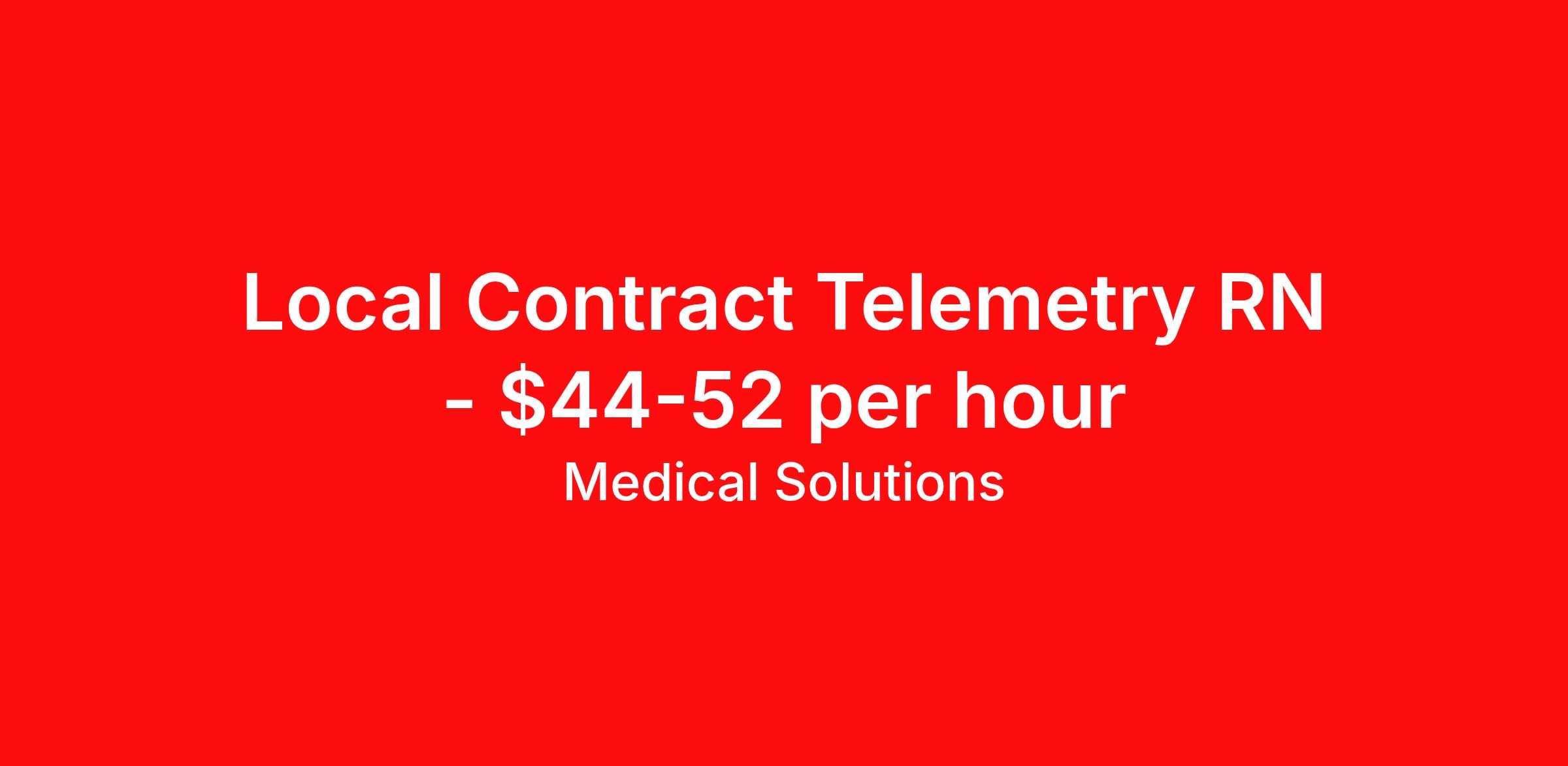 Medical Solutions is seeking a local contract nurse RN Telemetry for a local contract nursing job in Muscatine, Iowa. Job Description & Requirements Specialty: Telemetry Discipline: RN Duration: 13 weeks 36 hours per week Shift: 12 hours, nights Employment Type: Local Contract We’re seeking talented healthcare professionals whose adventure game is as strong as their clinical game. Those that want flexibility and high pay, we have the positions for you! Some of the industry-leading benefits enjoyed by Medical Solutions travel nurses and travel allied healthcare professionals include: Day One Medical, Dental, and Vision with low premiums Day One 401(k) with Company Contribution Personalized Compensation Packages Paid, Private, Fully Furnished, Pet-Friendly Housing Dedicated Recruiter and 24/7 Customer Care Line Per Diem Allowance and Paid Travel Licensure and Certification Reimbursement Free Liability Coverage Voluntary Benefits: Critical Illness, Hospital Indemnity, Accident, and Pet Insurance Equal Employment Opportunity And More! Estimated pay package based on bill rate at time job was posted. Bill rates can change frequently and without notice. Exact pay package may vary based on guaranteed hours, distance being traveled, and customizations available for travelers. Job Description UnityPoint Health Iowa Business Council This position offers SAME DAY INTERVIEWS! Please prepare qualified candidates to receive a call from a (405) area code. "A Day in The Life" at UnityPoint Health: a member of the interdisciplinary team, the traveler contributes professional/clinical knowledge and skills in the provision and management of care to patients. The traveler may be asked to float within the same discipline across local campuses. Travelers must be 50 miles from hospital; local candidates NOT accepted. NBO: 16 hrs EMR: EPIC OT/Holiday: 1.15x multiplier Call Back: 1.5x multiplier with 2 hr CB minimum On Call: $9/hr Charge/Precept: $6/hr Billable OT: 36-40 hrs/week, OT billable after 40 48 hrs/week, OT billable after 48 2025 Holidays: Winter holidays: Required to work 2 of 3 (Christmas, New Years, or Thanksgiving) Limit of 1 day request off between 11/26/25-11/30/25 and 12/23/25-1/2/26 for all travelers regardless of holidays worked. Submission Requirements At least 2 years of previous Med Surg or Stepdown experience required. First time travelers accepted! Will be required to float to ER; traveler must be comfortable doing so. Traveler must be comfortable with an acute patient population (critcal gtts, drips) Must have EPIC experience. PROFILE REQUIREMENTS: Work history/resume Skills checklist (must have been completed within 1 year of submission date) License verification Copy of required certifications References - 1 supervisory reference required at time of submission Proof of Taxable Address, to verify bill rate in accordance with local traveler policy listed above (any of the below documents are acceptable; only 1 document is required): Driver’s License Current Utility Bill Lease/Rental Agreement Mortgage Statement/Bill Homeowner’s or Renter’s Insurance Statement/Bill Voter Registration Bank Statement Auto Insurance Tax Return Certification Requirements ACLS (AHA) BLS (AHA) NIHSS State License Requirements Iowa Compact Allowed About the Facility Medical Solutions Job ID 1073870L. Posted job title: Telemetry About Medical Solutions At Medical Solutions, we’re people who care, helping people who care. No matter how you look at it, there’s a whole lot of care going on in our world and that’s just the way we like it. What do we do? Medical Solutions is one of the nation’s largest providers of total workforce solutions in the healthcare industry, connecting nurses and allied health clinicians with hospitals and healthcare systems across the country and around the corner. Through our family of brands, we also serve a segment of clients outside of the healthcare space. And we’re the very best at what we do. You’ll love our culture that’s filled with heart and soul. As a company and employer, we’re sincerely and unabashedly us. We lead as humans first and believe the unique qualities of each team member make us better together. We share a purpose for helping others and the drive to make a difference. And we offer endless opportunities for personal and professional growth, throughout your career. At Medical Solutions, you’ll find a great place to work and a career home. We’ve received Best Places to Work awards, landed top industry awards, and received accolades for the impact we’ve made in business and within our community. But the only way to really get to know us, is to join us. We think you’ll fit right in. Benefits Weekly pay Holiday Pay Guaranteed Hours Continuing Education 401k retirement plan Pet insurance Company provided housing options Cancelation protection Wellness and fitness programs Mileage reimbursement Referral bonus Employee assistance programs Medical benefits Dental benefits Vision benefits Benefits start day 1 License and certification reimbursement Life insurance Discount program