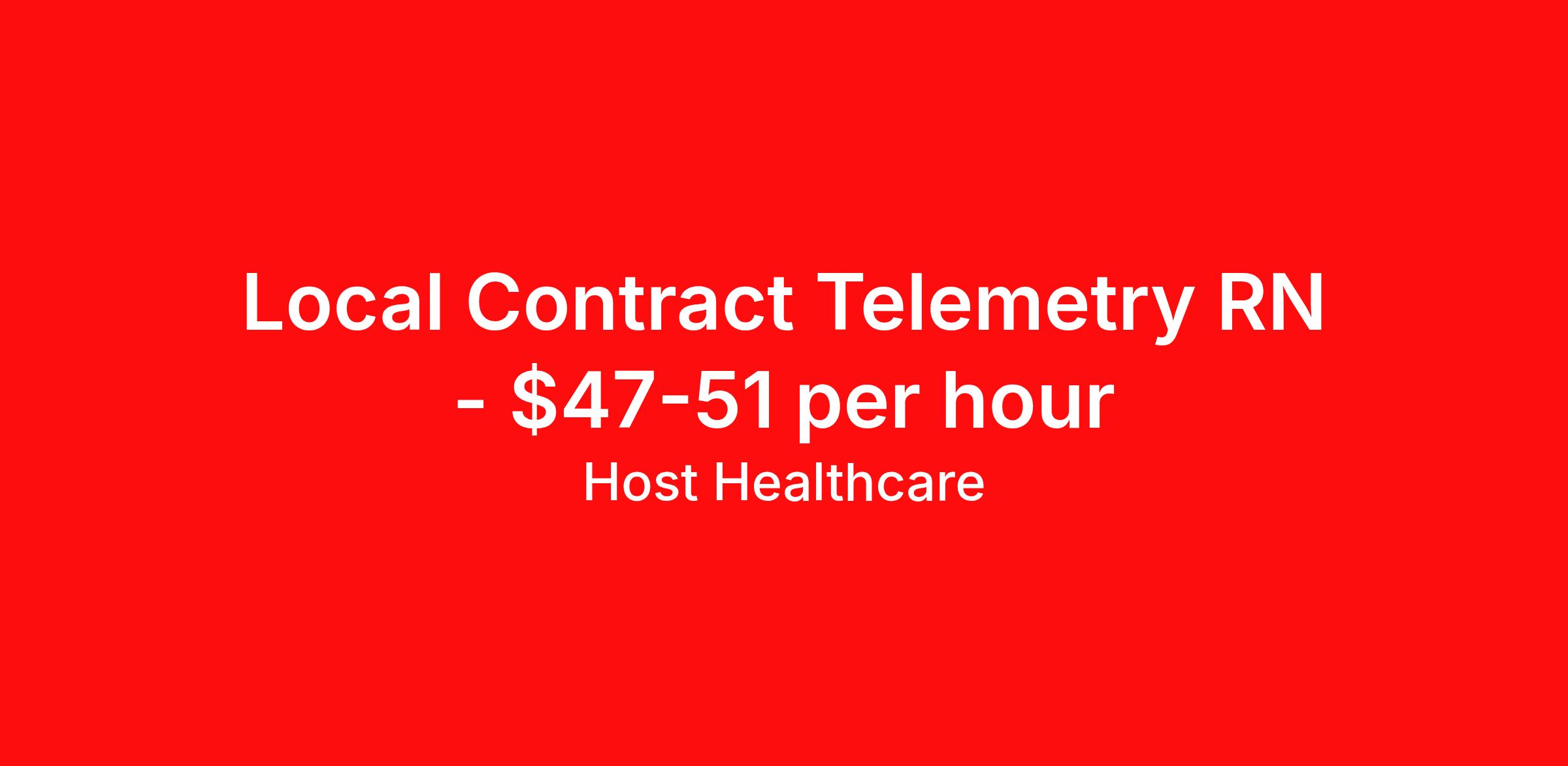 Host Healthcare is seeking a local contract nurse RN Telemetry for a local contract nursing job in Salem, Massachusetts. Job Description & Requirements Specialty: Telemetry Discipline: RN Start Date: 05/17/2026 Duration: 13 weeks 36 hours per week Shift: 12 hours, nights Employment Type: Local Contract Host Healthcare Job ID La1fVX000002xMTBYA2. Pay package is based on 12 hour shifts and 36 hours per week (subject to confirmation) with tax-free stipend amount to be determined. Posted job title: RN - Telemetry About Host Healthcare At Host Healthcare, we provide a truly comfortable experience as you explore your travel nursing, therapy, or allied career. We make your travel healthcare journey easy by taking care of all the details, so you don’t have to. We are on a mission to help others live better and we do this by helping the healers of the world be as comfortable as possible. With access to tens of thousands of travel nursing, therapy, and allied jobs in all 50 states, our responsive and friendly recruiters find your dream position based on what’s important to you. During your assignment, get access to premium benefits, including Day 1 medical that continues up to 30 days between assignments, 401K matching, travel reimbursements, dedicated housing support, and more. We also offer 24/7 support from our team and access to our on-staff clinicians so you can feel comfortable and confident throughout your entire assignment. Travel comfortably with Host Healthcare. Benefits Referral bonus School loan reimbursement Vision benefits Wellness and fitness programs Company provided housing options License and certification reimbursement Life insurance Medical benefits Mileage reimbursement Pet insurance Discount program Employee assistance programs Guaranteed Hours Health savings account Holiday Pay 401k retirement plan Continuing Education Dental benefits