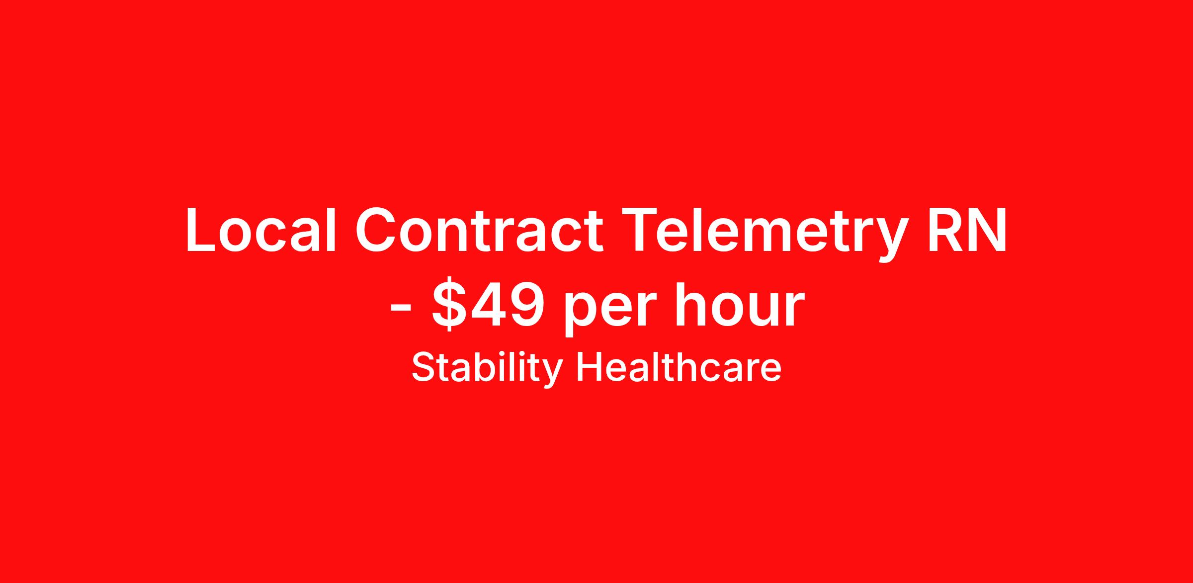 Stability Healthcare is seeking a local contract nurse RN Telemetry for a local contract nursing job in Decatur, Georgia. Job Description & Requirements Specialty: Telemetry Discipline: RN Start Date: 04/20/2026 Duration: 13 weeks 36 hours per week Shift: 12 hours, nights Employment Type: Local Contract Stability Healthcare is looking for a Telemetry RN contract position in Decatur, GA. Telemetry nurses care for patients by using medical equipment to monitor blood pressure, heart rate, blood oxygen level, breathing rate, and other vital signs. Commonly, these patients have recently undergone surgery. *$600 travel bonus *Day 1 health insurance with United Healthcare *PTO plan start accruing on day 1, use during contract or cash out at the end! *Guaranteed stipend if facility calls you off *Extra hour bonus earn an additional hourly bonus for working over your weekly contracted hours Stability Job ID L-826818. Pay package is based on 12 hour shifts and 36 hours per week (subject to confirmation) with tax-free stipend amount to be determined. Posted job title: Telemetry About Stability Healthcare Stability Healthcare was founded in 2009, with the mission of becoming the best Travel Nursing Agency in California. We have been rated one of the top travel nursing agencies and offer our nurses the highest paying travel nursing jobs available. We have access to the best travel assignments from 1000’s of facilities. You can start the year off in sunny California, spend the Spring in the Colorado Rockies, enjoy the Summer in the Mid-West, experience the change of seasons in Boston and New York, and hit the beaches of Florida in the winter. Our Nurses work in the best hospitals and health systems in the country. Benefits Guaranteed Hours Benefits start day 1