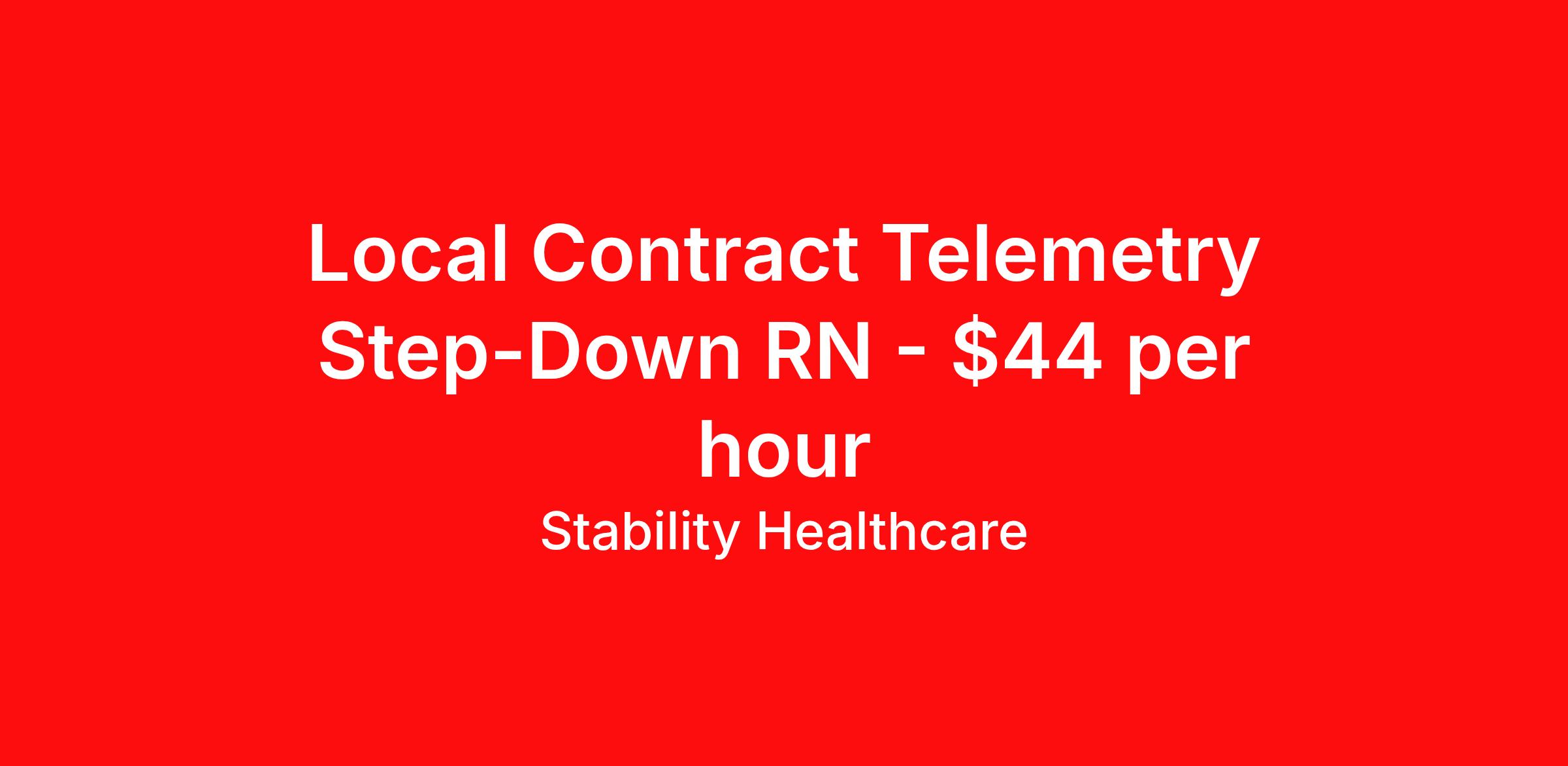 Stability Healthcare is seeking a local contract nurse RN Telemetry PCU - Progressive Care Unit for a local contract nursing job in LaGrange, Georgia. Job Description & Requirements Specialty: Telemetry PCU - Progressive Care Unit Discipline: RN Duration: 13 weeks 36 hours per week Shift: 12 hours, nights Employment Type: Local Contract Stability Healthcare is looking for a Tele Step-Down RN contract position in LaGrange, GA. The PCU nurse is sometimes also called a step-down nurse and the PCU is also known as cardiac stepdown, medical stepdown, neuro stepdown, surgical stepdown and ER holding. PCU nursing jobs traditionally operate between the levels of general and ICU care, and more recently, in the field of critical care, as well. *$600 travel bonus *Day 1 health insurance with United Healthcare *PTO plan start accruing on day 1, use during contract or cash out at the end! *Guaranteed stipend if facility calls you off *Extra hour bonus earn an additional hourly bonus for working over your weekly contracted hours Stability Job ID L-822230. Pay package is based on 12 hour shifts and 36 hours per week (subject to confirmation) with tax-free stipend amount to be determined. Posted job title: Tele Step-Down About Stability Healthcare Stability Healthcare was founded in 2009, with the mission of becoming the best Travel Nursing Agency in California. We have been rated one of the top travel nursing agencies and offer our nurses the highest paying travel nursing jobs available. We have access to the best travel assignments from 1000’s of facilities. You can start the year off in sunny California, spend the Spring in the Colorado Rockies, enjoy the Summer in the Mid-West, experience the change of seasons in Boston and New York, and hit the beaches of Florida in the winter. Our Nurses work in the best hospitals and health systems in the country. Benefits Guaranteed Hours Benefits start day 1