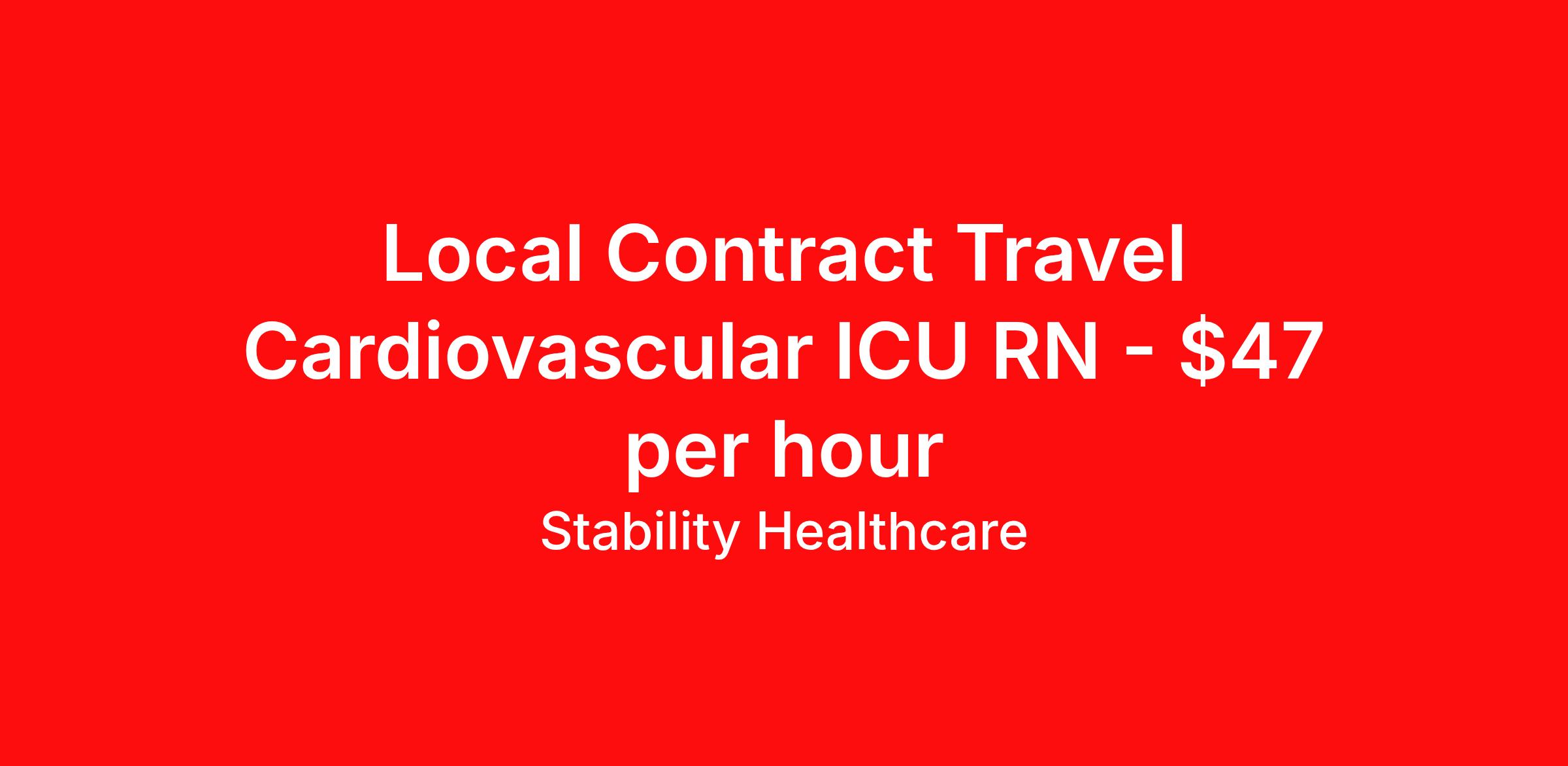 Stability Healthcare is seeking a local contract nurse RN CVICU for a local contract nursing job in Plano, Texas. Job Description & Requirements Specialty: CVICU Discipline: RN Duration: 13 weeks 36 hours per week Shift: 12 hours, days Employment Type: Local Contract Stability Healthcare is looking for a CVICU RN contract position in Plano, TX. Nurses working in the cardiovascular intensive care unit provide care for patients recovering from open-heart surgery and heart transplants. CVICU Nurses observe changes, perform diagnostics tests, analyze charts, and record medical histories of patients. *$600 travel bonus *Day 1 health insurance with United Healthcare *PTO plan start accruing on day 1, use during contract or cash out at the end! *Guaranteed stipend if facility calls you off *Extra hour bonus earn an additional hourly bonus for working over your weekly contracted hours Stability Job ID L-785076. Pay package is based on 12 hour shifts and 36 hours per week (subject to confirmation) with tax-free stipend amount to be determined. Posted job title: CVICU About Stability Healthcare Stability Healthcare was founded in 2009, with the mission of becoming the best Travel Nursing Agency in California. We have been rated one of the top travel nursing agencies and offer our nurses the highest paying travel nursing jobs available. We have access to the best travel assignments from 1000’s of facilities. You can start the year off in sunny California, spend the Spring in the Colorado Rockies, enjoy the Summer in the Mid-West, experience the change of seasons in Boston and New York, and hit the beaches of Florida in the winter. Our Nurses work in the best hospitals and health systems in the country. Benefits Guaranteed Hours Benefits start day 1