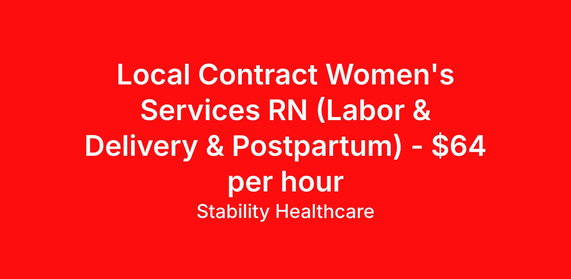 Local Contract Women's Services RN (Labor & Delivery & Postpartum) - $64 per hour