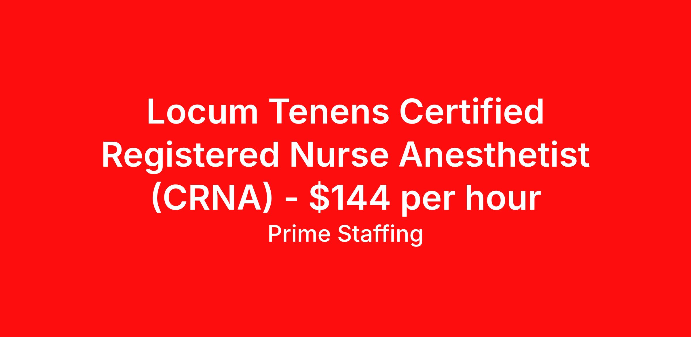 Locum Tenens Certified Registered Nurse Anesthetist (CRNA) - $144 per hour