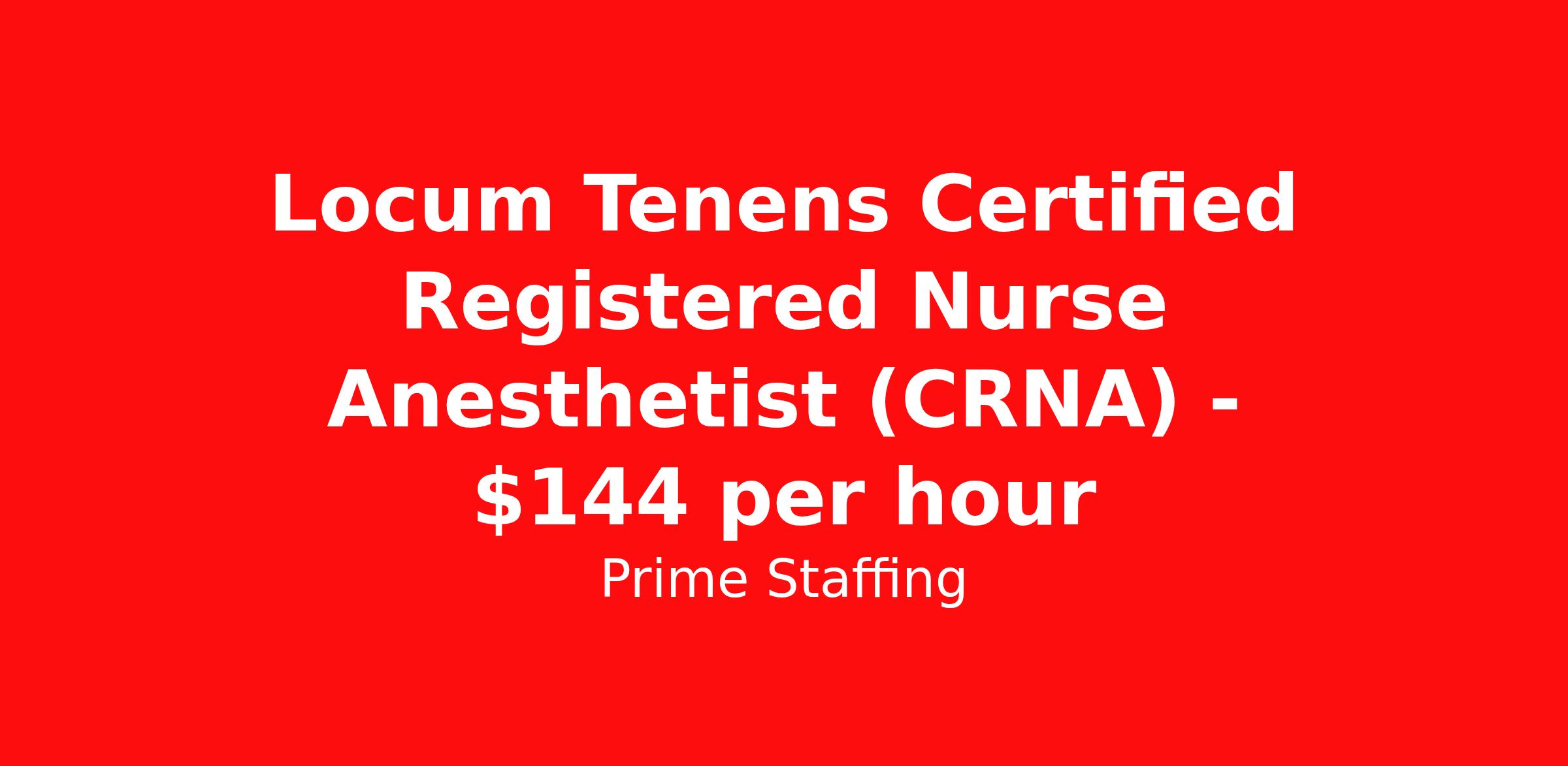 Locum Tenens Certified Registered Nurse Anesthetist (CRNA) - $144 per hour