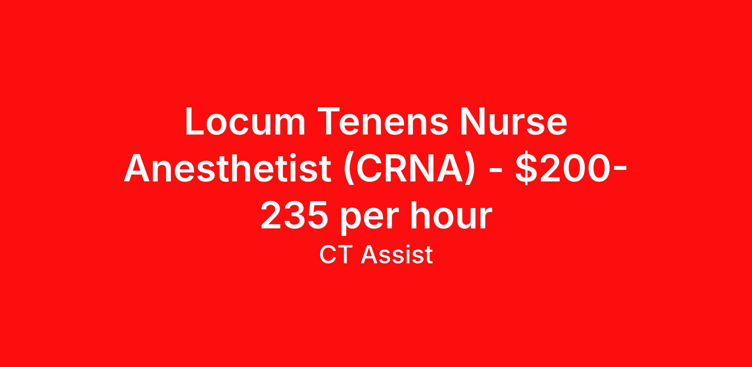 Locum Tenens Nurse Anesthetist (CRNA) - $200-235 per hour