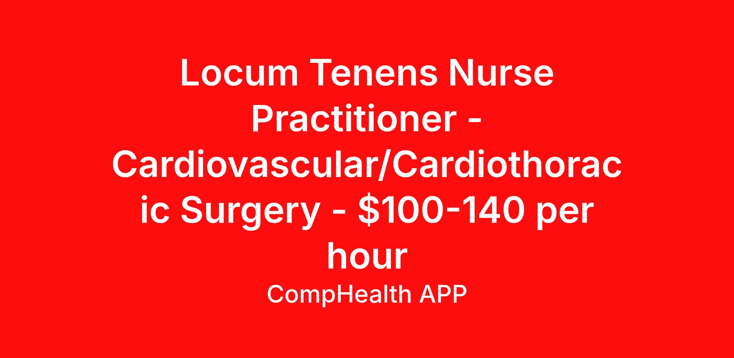 Locum Tenens Nurse Practitioner - Cardiovascular/Cardiothoracic Surgery - $100-140 per hour