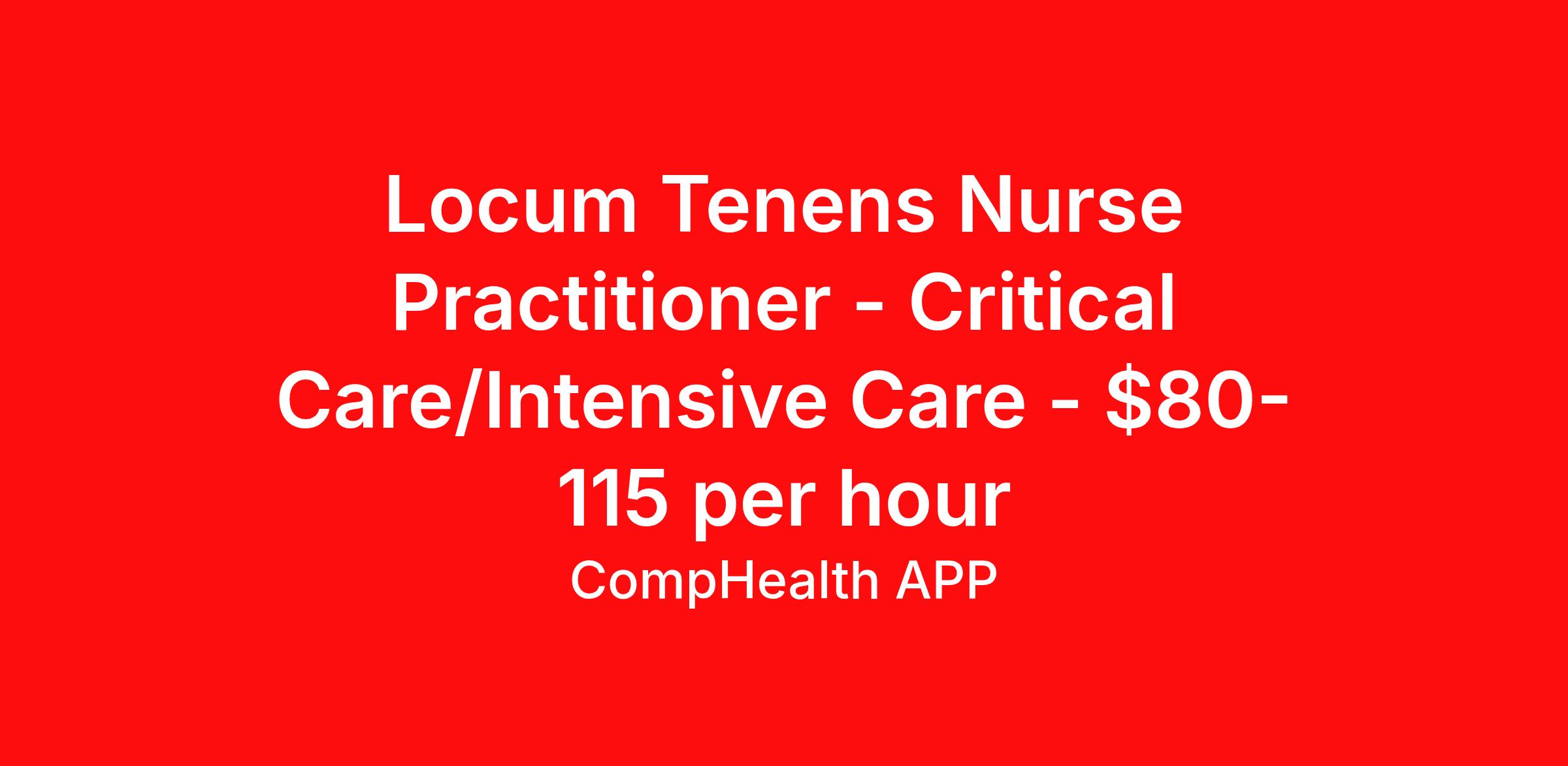 Locum Tenens Nurse Practitioner - Critical Care/Intensive Care - $80-115 per hour