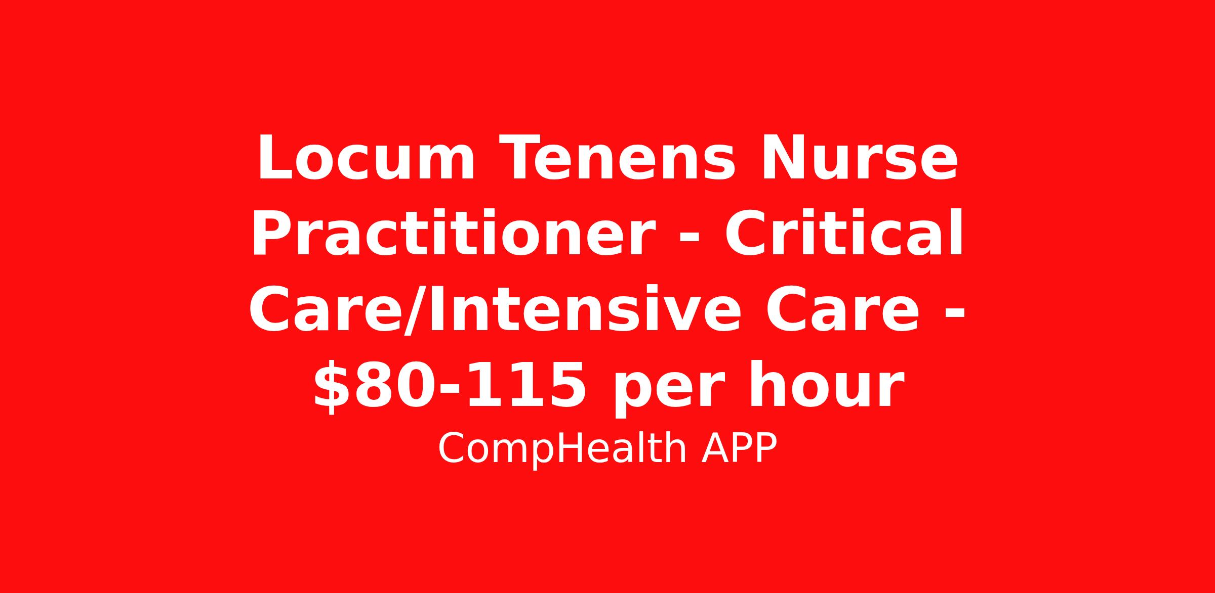 Locum Tenens Nurse Practitioner - Critical Care/Intensive Care - $80-115 per hour