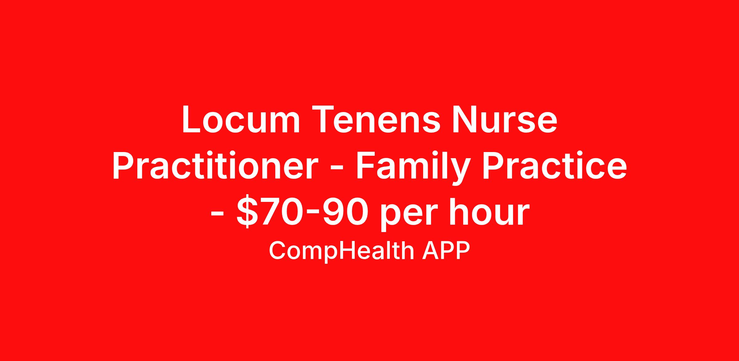 Locum Tenens Nurse Practitioner - Family Practice - $70-90 per hour