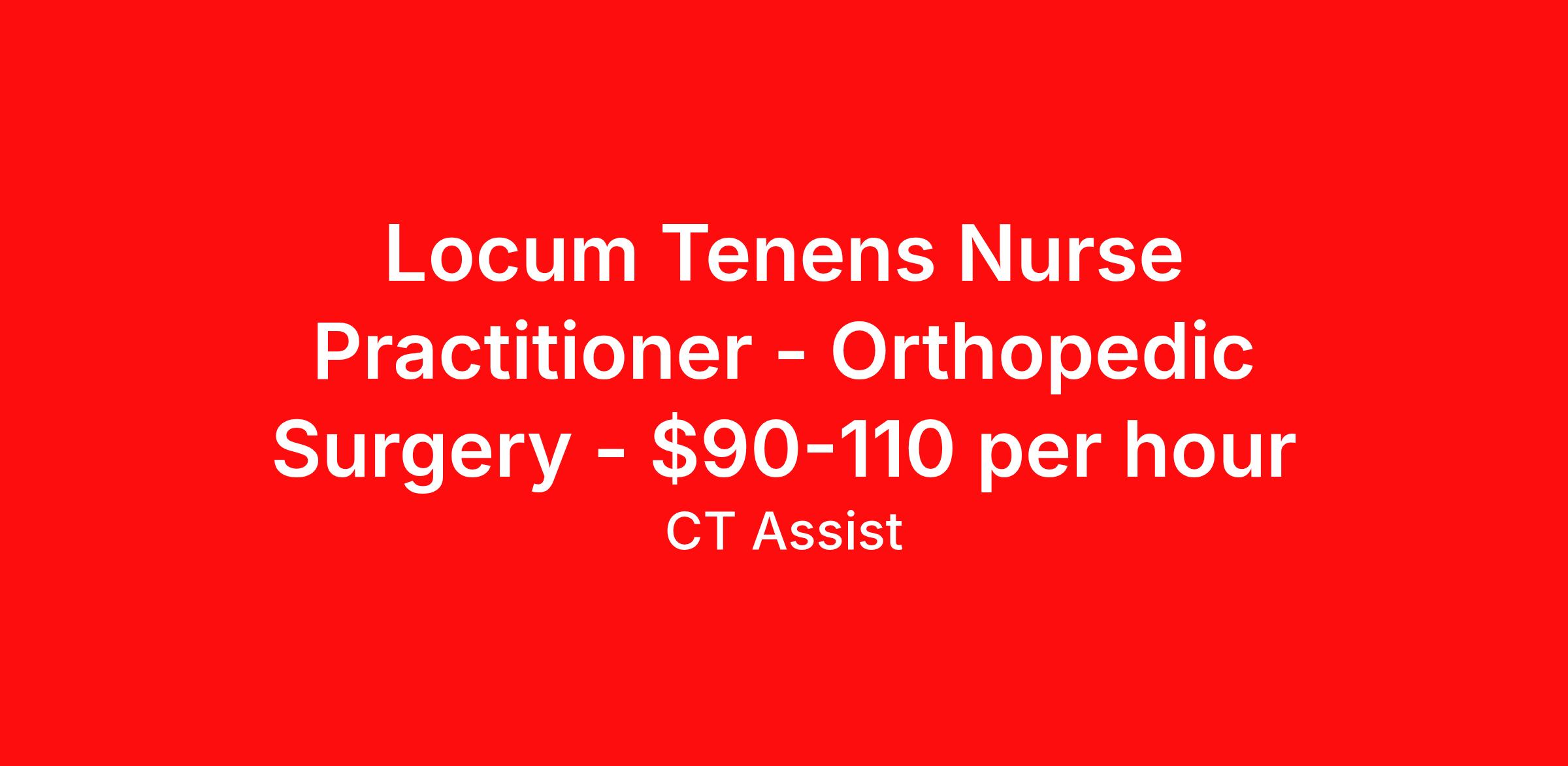 Locum Tenens Nurse Practitioner - Orthopedic Surgery - $90-110 per hour