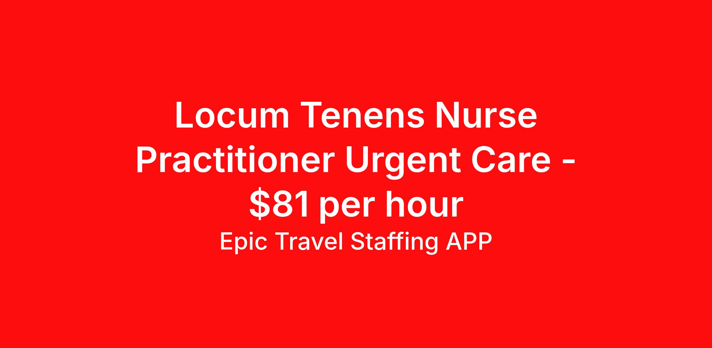 Epic Travel Staffing APP is seeking a Nurse Practitioner Urgent Care for a locum tenens job in Lynchburg, Virginia. Job Description & Requirements Specialty: Urgent Care Discipline: Nurse Practitioner Start Date: 04/08/2026 Duration: 13 weeks 36 hours per week Shift: 12 hours, days Employment Type: Locum Tenens Job Opportunities Epic Travel Staffing is hiring a Locum - NP - Urgent Care Shift: Days, 8a-8p,12x3, 36 hrs per week Length: 13 weeks Requirements: 2 Years Experience VA license BLS Board Certified (ANCC, AANP) Epic Travel Staffing: Day 1 health insurance coverage and comprehensive benefits options 401(k) matching program Weekly direct deposit Industry leading allowances and reimbursements Referral program with cash bonuses and additional perks Exclusive job openings - Only at Epic Epic Staffing Group is an Equal Opportunity Employer. All qualified applicants will receive consideration for employment without regard to race, color, religion, sex, sexual orientation, gender identity, national origin, disability, genetic information, veteran status, or any other characteristic protected by law. We also consider qualified applicants with criminal histories, consistent with applicable law. If you need assistance or an accommodation during the application process, please contact us. By applying for this position, you agree that any calls from Epic Staffing Group and its subsidiaries may be monitored or recorded for training and quality assurance purposes Please note that all pay rates are estimates. Weekly gross pay is based on qualifications and experience. Rate applies to travel positions only (50 miles from permanent address). Epic Travel Staffing APP Job ID 1066568. Pay package is based on 12.0 hour shifts and 36.0 hours per week (subject to confirmation) with tax-free stipend amount to be determined. Posted job title: Nurse Practitioner About Epic Travel Staffing APP Epic Oncology Staffing specializes in placing Radiation Oncology professionals in a variety of healthcare settings, including free-standing Cancer Centers, Acute Care Medical Centers, University-based facilities, and NCI-designated Comprehensive Cancer Centers. Our singular focus on oncology sets us apart, enabling us to provide a rich variety of career paths in Travel, Locum, and Interim roles throughout the United States. At Epic Oncology Staffing, we pride ourselves on offering personalized, expert support to our clinicians. This is especially evident in our efforts to connect Registered Nurses and Allied Professionals with oncology travel assignments, a need that has become increasingly crucial in the post-pandemic landscape. Our commitment is unwavering in aligning healthcare professionals with roles that not only match their clinical expertise but also suit their preferred geographical locations. By understanding both the dynamic nature of the healthcare industry and the specific aspirations of our clinicians, Epic Oncology Staffing stands as a beacon of excellence and precision in oncology recruitment.