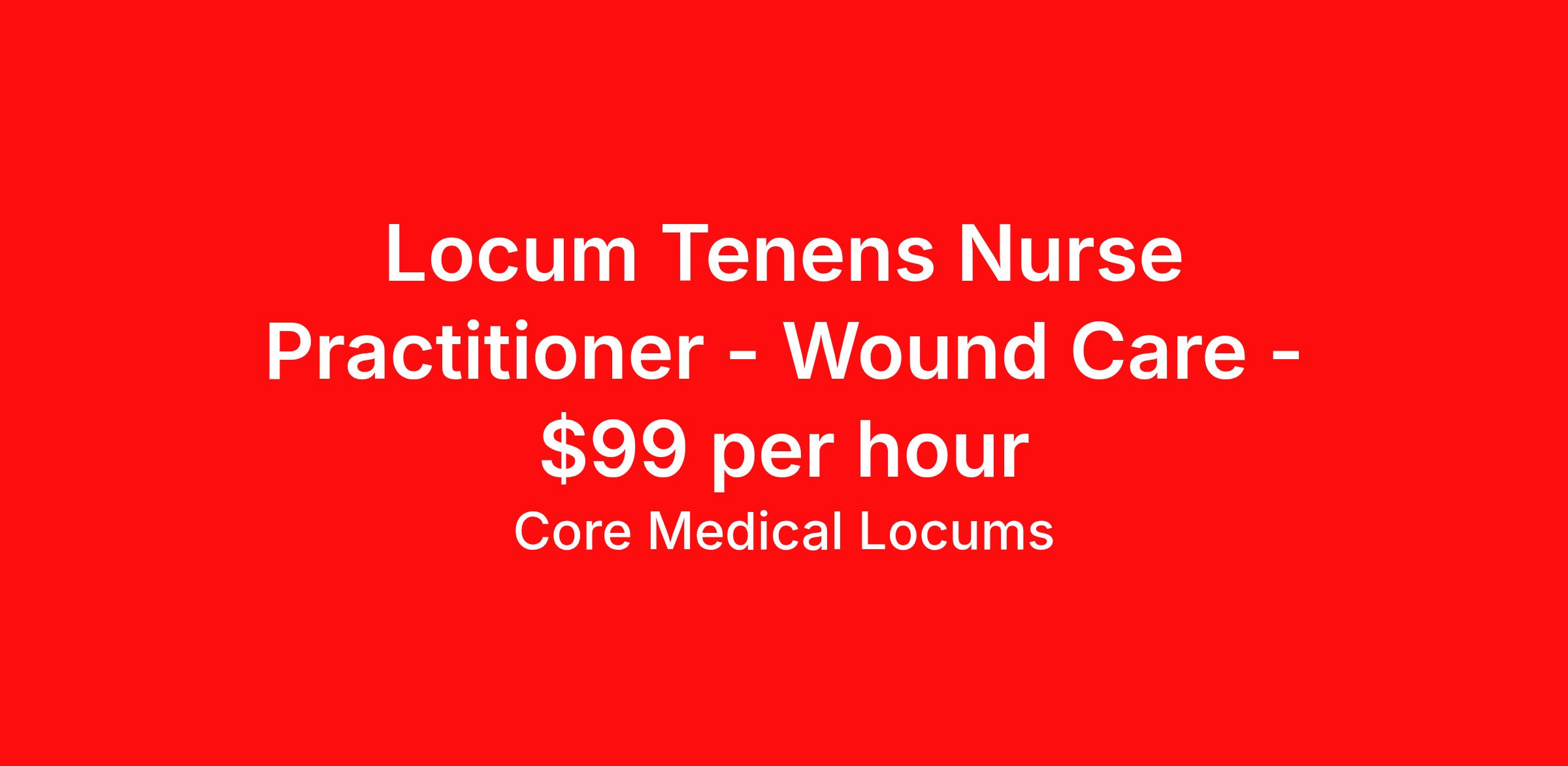 Core Medical Locums is seeking a Nurse Practitioner Wound Care for a locum tenens job in Visalia, California. Job Description & Requirements Specialty: Wound Care Discipline: Nurse Practitioner Start Date: 03/30/2026 Duration: 13 weeks 40 hours per week Shift: 8 hours Employment Type: Locum Tenens Client in CA seeking a Locum Nurse Practitioner to work in an Outpatient Wound Care Setting. - 5-8hrs - 40hrs per week We are looking for a healthcare professional who is ready to provide exceptional patient care in this locum tenens contract role. Help us continue our mission to connect people, improve lives, and give back to the community by joining the CoreMedical Group team. When you work with CoreMedical Group, we put you first and treat you like family, supporting you every step of the way. CoreMedical Group is one of the largest healthcare staffing agencies in the country, with locum tenens located across the United States. Our recruiters will help you find the perfect job, whether it's across the country or across the street. In addition to dedicated, personalized support from your recruiter, when you work with CoreMedical Group you'll receive: Access to an extensive benefits package, including day 1 health, dental, and vision insurance, employer paid life insurance, a health reimbursement account, and more! Weekly paychecks with competitive pay packages Matching 401(k) benefits to help you save for retirement Licensure assistance and reimbursement to set you up for success on your contract Travel reimbursement and dedicated housing support while on assignment Referral cash bonuses when you connect us with other clinicians CoreMedical Group also offers you a free, all-inclusive vacation each year as our way of saying "thank you" for your hard work. Join other healthcare professionals on the annual Club CoreMed retreat and you'll see why our locum tenens professionals come back to us year after year! Your career is too valuable to tackle on your own. Let CoreMedical Group help you with your healthcare journey! *Estimate of weekly payments is intended for informational purposes and includes hourly wages, as well as reimbursements for meal & incidental expenses, and housing expenses incurred on behalf of the Company. Any benefits (medical/dental/vision) are in addition to the weekly pay. Please speak with your Recruiter for additional details. Estimated payments are subject to change until formal offer of assignment is made and accepted. Core Medical Locums Job ID 1363144. Posted job title: NP About Core Medical Locums CoreMedical Group is one of the largest healthcare staffing agencies in the country. We have jobs nationwide in travel nursing, travel allied health, interim, locum tenens, and permanent placements! Join the staffing agency with Club CoreMed, the best perk in the industry - an all inclusive paid trip to a tropical resort! Benefits Pet insurance Employee assistance programs Sick pay Life insurance 401k retirement plan Vision benefits Weekly pay Benefits start day 1 Discount program Medical benefits Referral bonus Mileage reimbursement Holiday Pay Continuing Education Guaranteed Hours Wellness and fitness programs Company provided housing options Dental benefits License and certification reimbursement