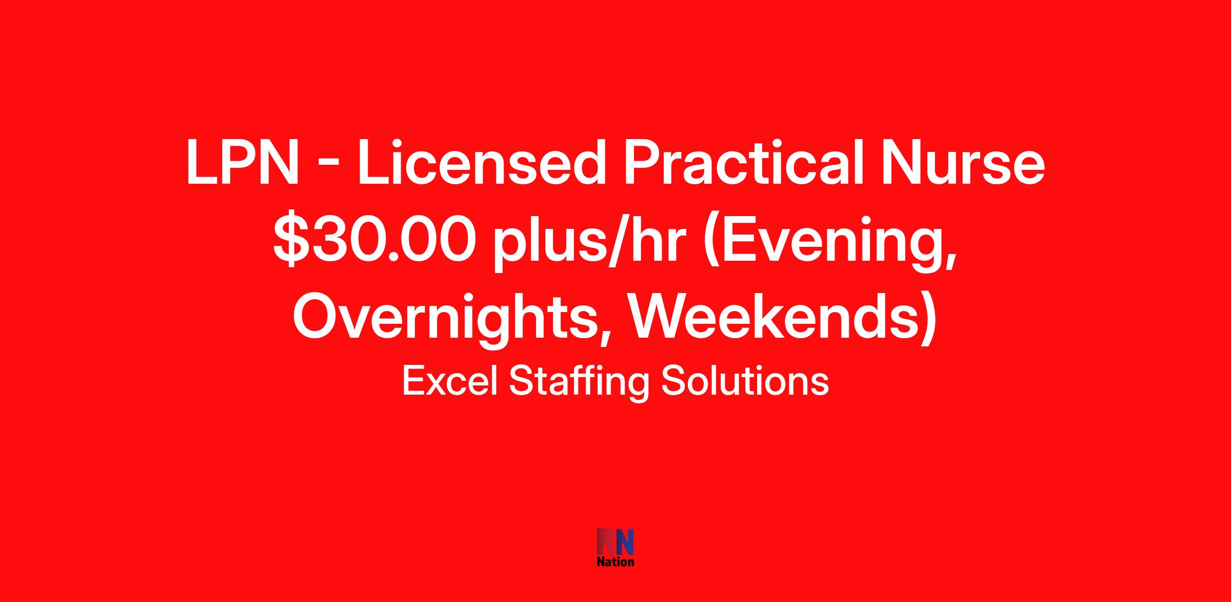We have multiple positions open for Dependable LPN'S who are available to work, Evening, Overnights, Weekends and Holidays. GREAT PAY!! To be considered for this position you are required to work a minimum of 2-4 shifts per week including every other weekend. strong work ethic and great communication skills a must.