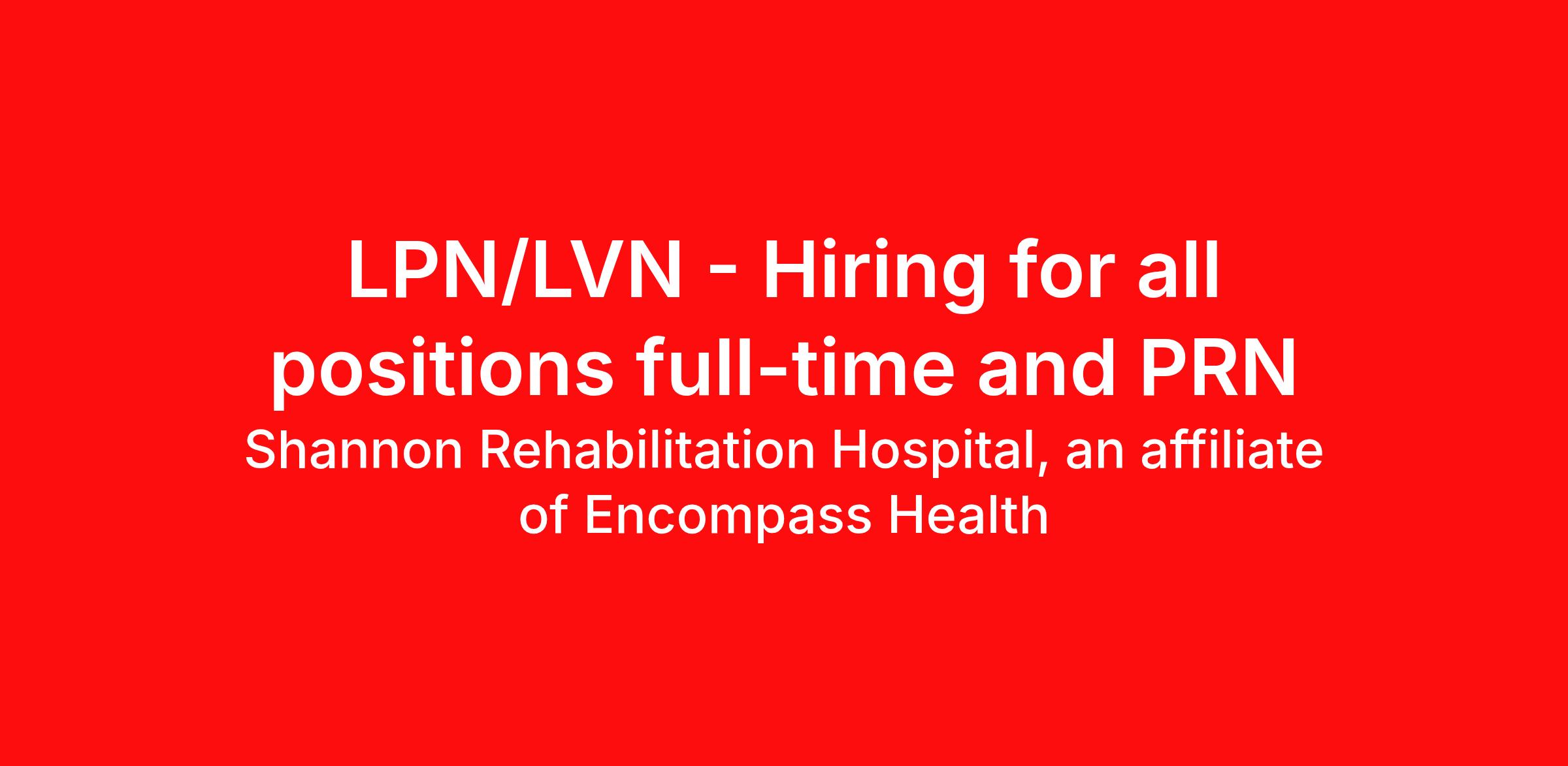LPN/LVN - Hiring for all positions full-time and PRN