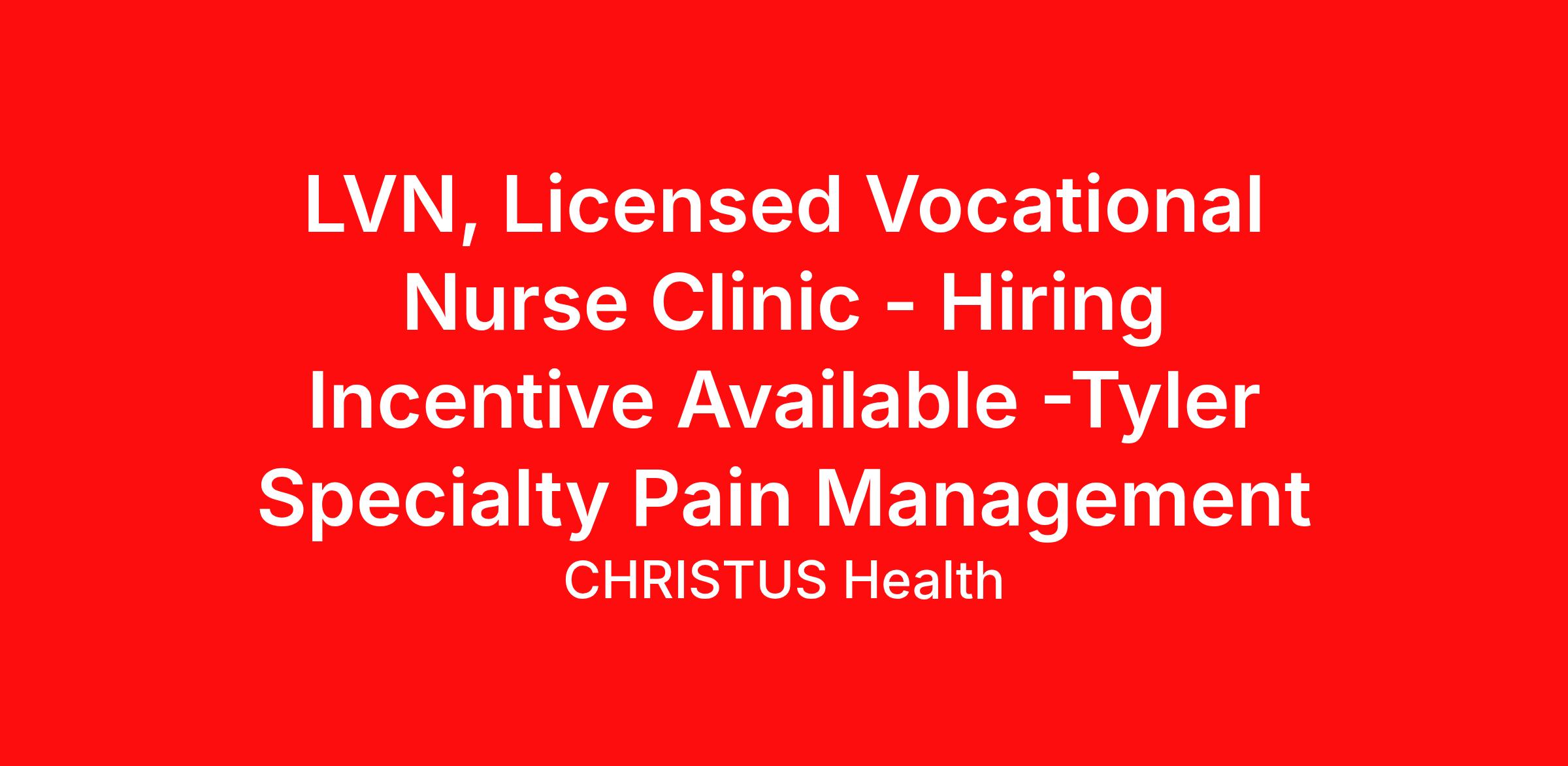 LVN, Licensed Vocational Nurse Clinic - Hiring Incentive Available -Tyler Specialty Pain Management