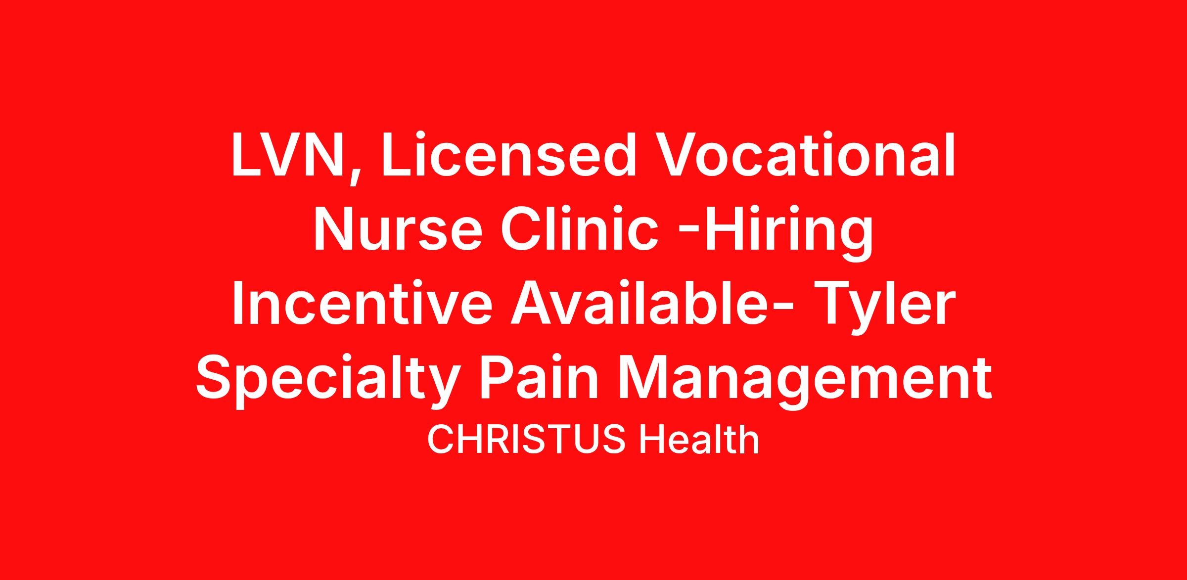 LVN, Licensed Vocational Nurse Clinic -Hiring Incentive Available- Tyler Specialty Pain Management