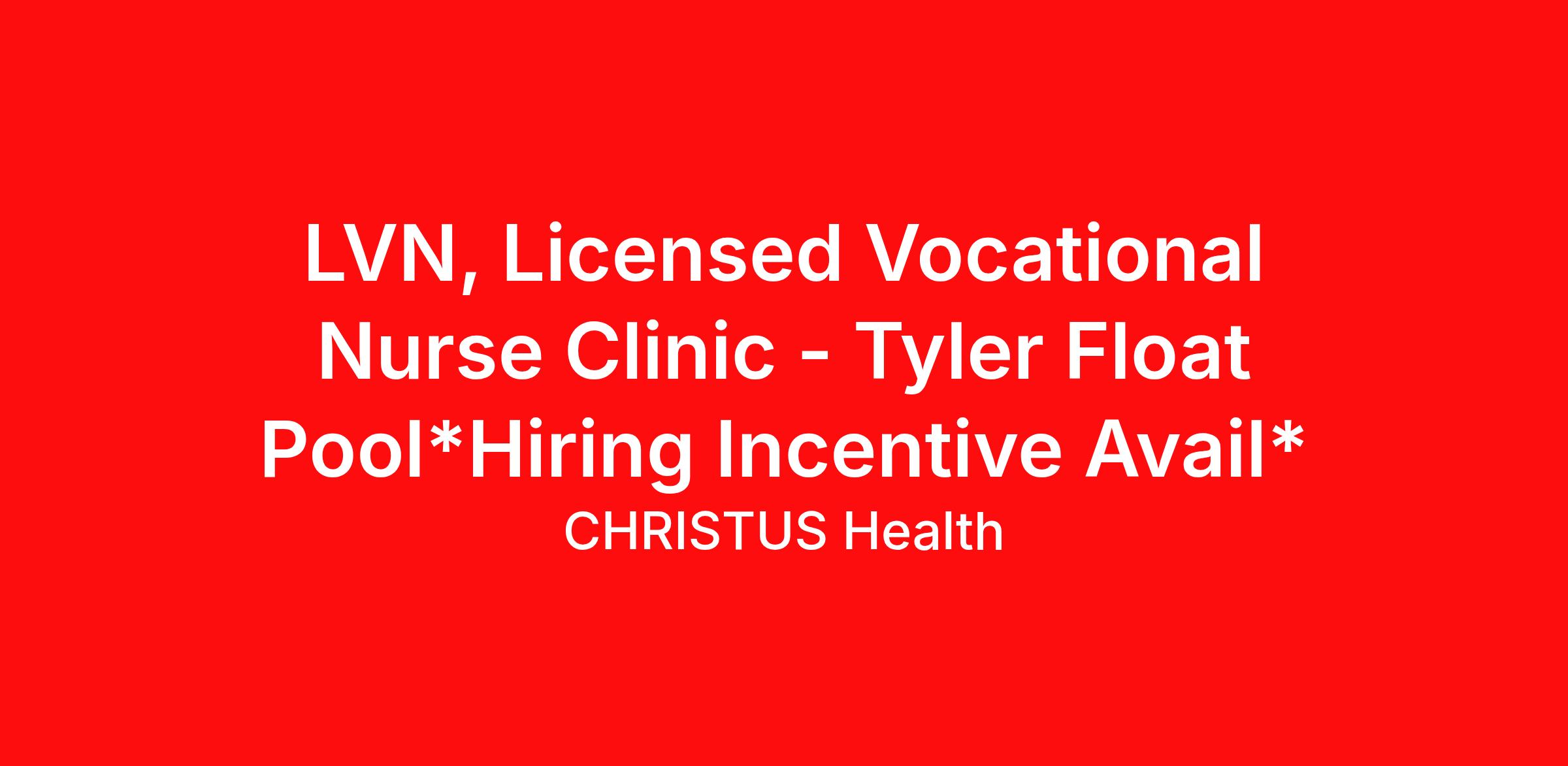 LVN, Licensed Vocational Nurse Clinic - Tyler Float Pool*Hiring Incentive Avail*
