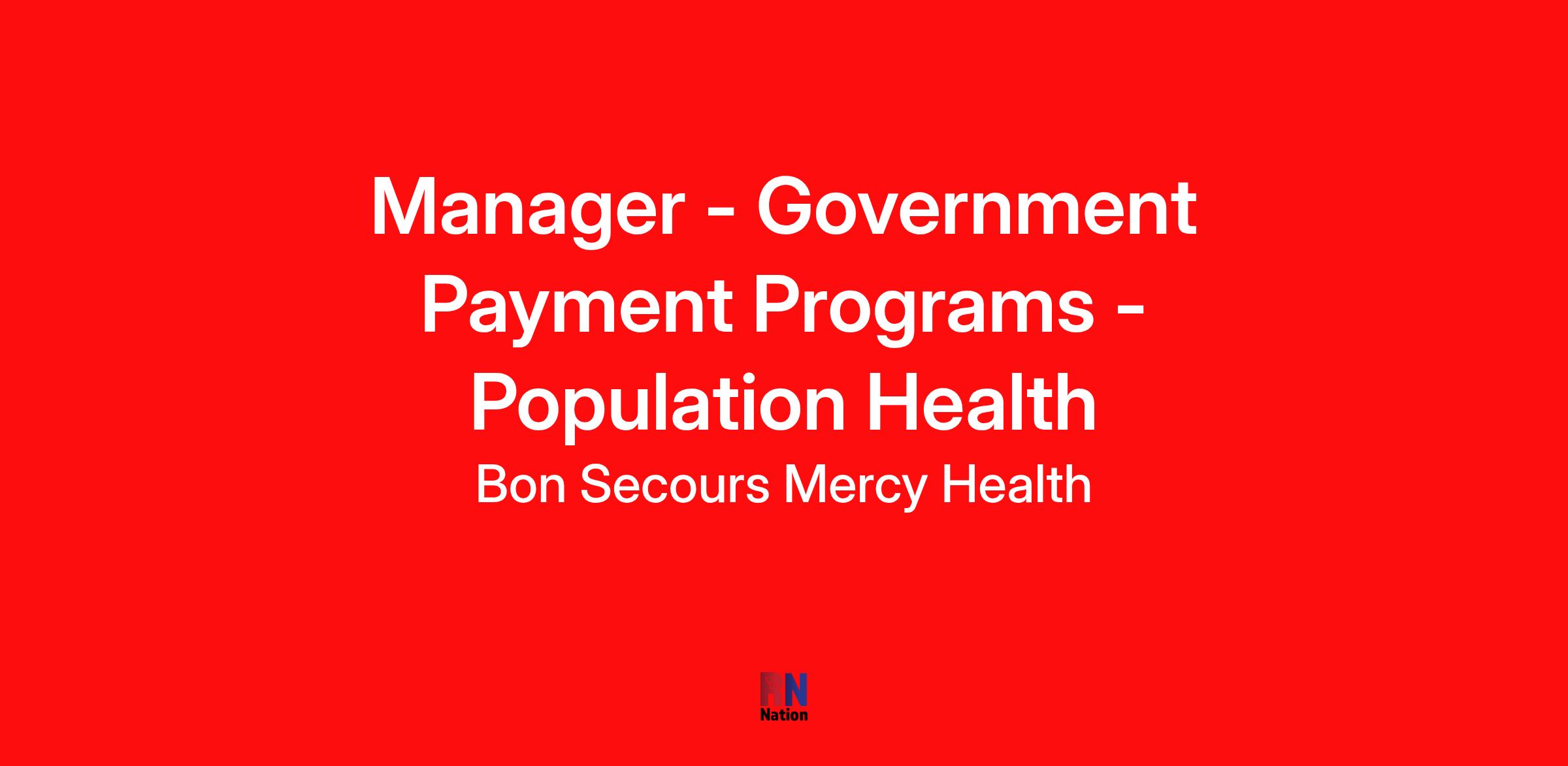 Reporting to the System Director, the Manager of Government Payment Programs provides operational leadership and oversight of government-sponsored payment models within the Bon Secours Mercy Health Population Health department, such as but not limited to the Medicare Shared Savings Program (MSSP), Transforming Episode Accountability Model (TEAM) or other bundle payment models. The Manager is accountable for the successful execution and compliance of assigned value-based payment programs, serving as the subject matter expert and primary operational lead. This role partners with internal and external stakeholders to ensure strategic alignment and sustained success in advancing population health goals.