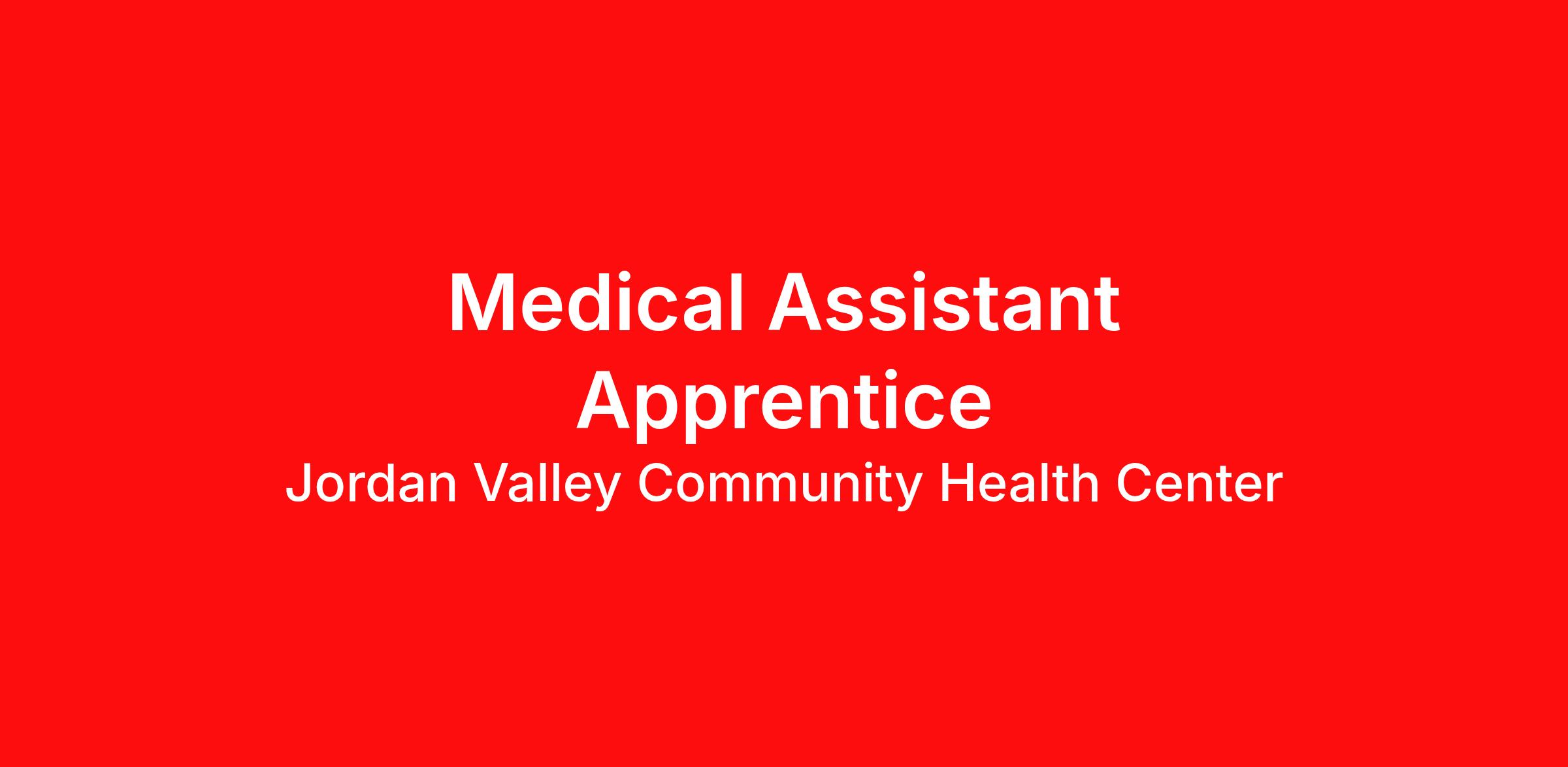 The Medical Assistant (MA) Apprentice will participate in Jordan Valley’s Department of Labor Registered MA Apprentice Program, receiving on-the-job skills training and related technical instruction from the Nursing Education Coordinator and other appropriately qualified Jordan Valley staff. The program curriculum is structured to support the MA apprentice in passing the National Health career Association (NHA) Certified Clinical Medical Assistant (CCMA) exam and transitioning into a full-time MA role at Jordan Valley at the conclusion of the program.