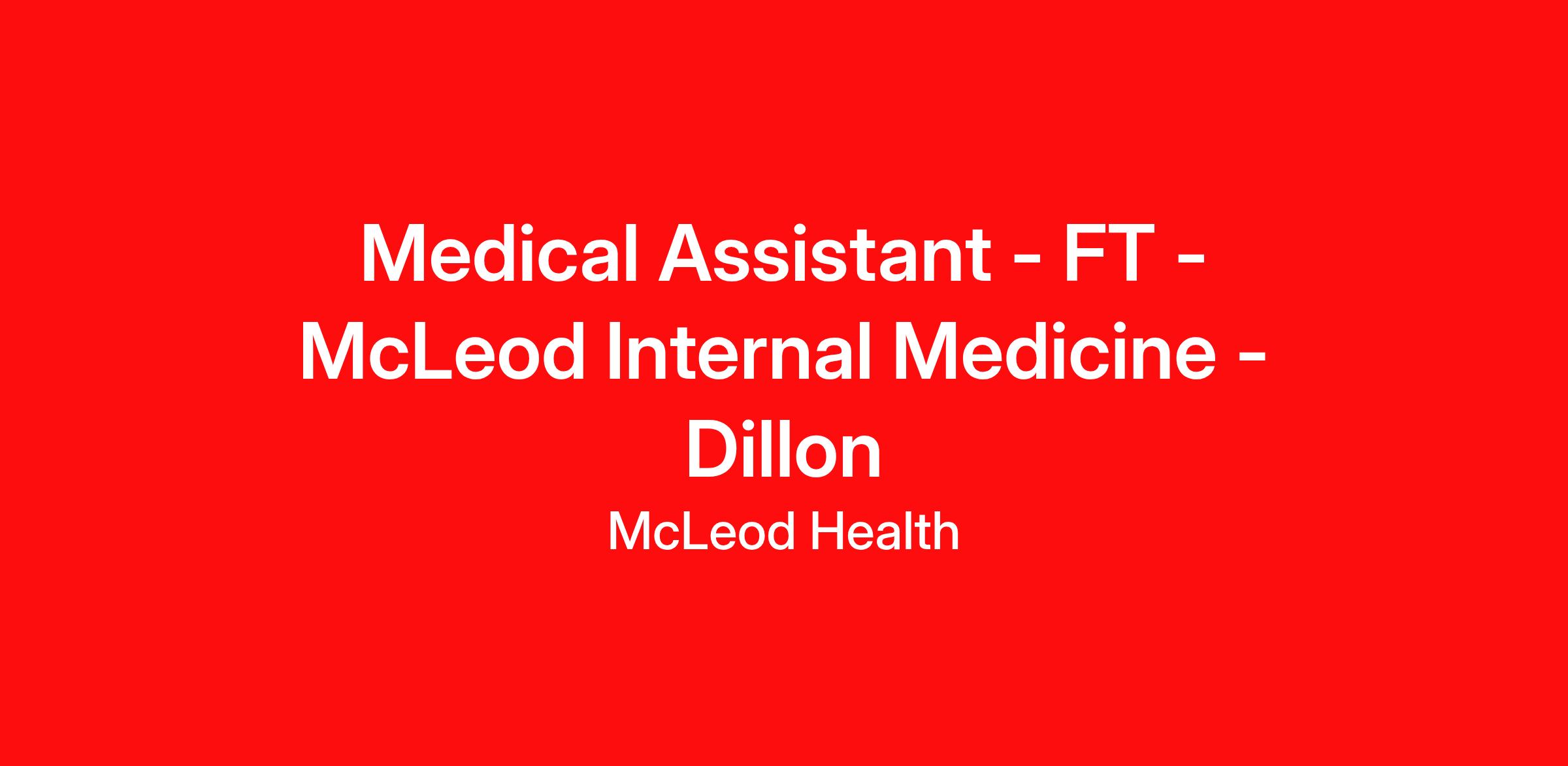 Medical Assistant - FT - McLeod Internal Medicine - Dillon SC